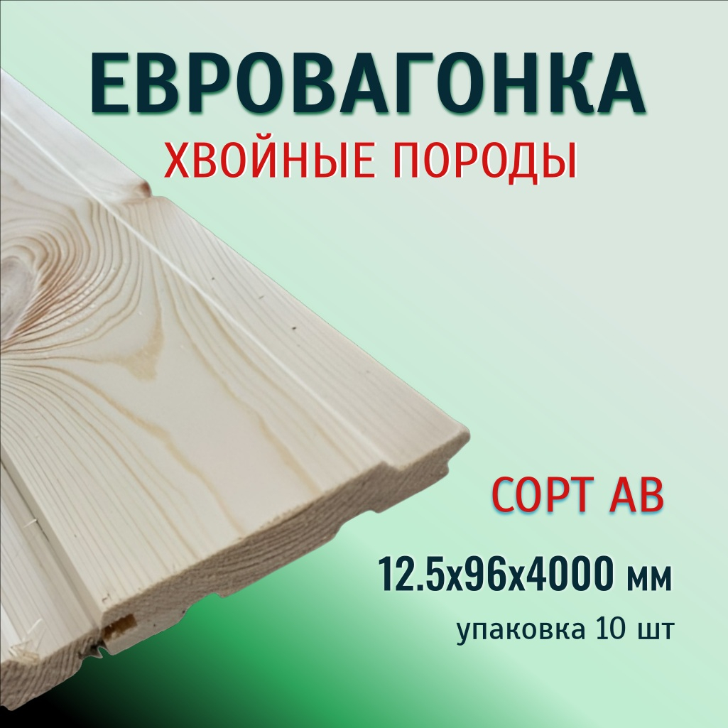 Евровагонка, сорт АВ, Хвоя, Киров 12.5х96х6000 мм, в упаковке 10 штук