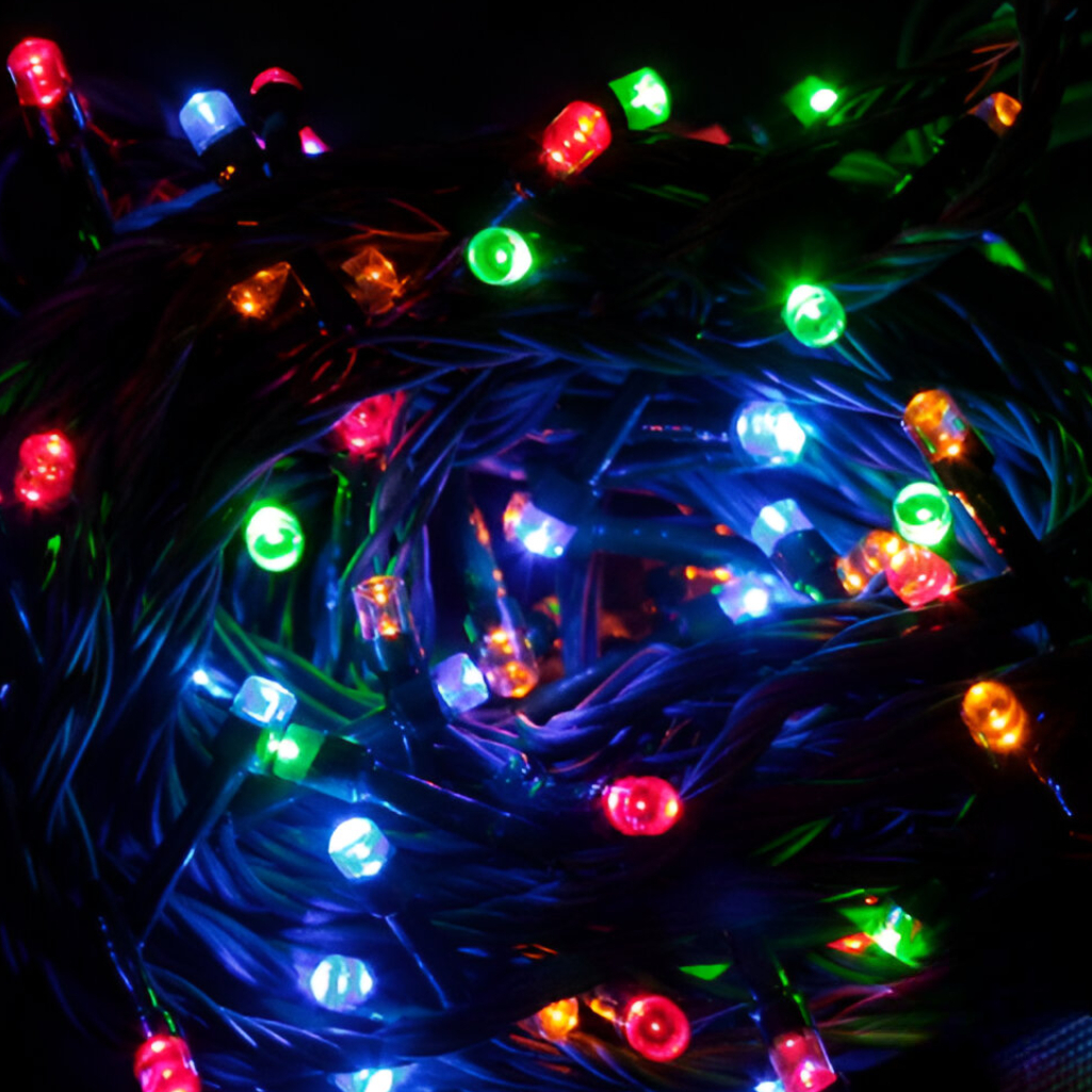 Гирлянда светодиодная Волшебная страна LED100-5-MC 54090, IP20, нить, Разноцветная, 5 м предназначена для создания праздничной атмосферы внутри помещений. Гирлянду составляют 100 светодиодов, мощностью 6.2 Вт. Длина гирлянды 5 метров, провод зеленого цвета. Гирлянда Волшебная страна LED100-5-MC имеет 8 режимов работы. Яркие светодиоды мигают, добавляя позитивного настроения окружающим. Длина кабеля 150 см. Гирлянду нельзя размещать в помещениях с высокой влажностью. Этот универсальный декоративный элемент подходит для украшения не только елок, но и стен, книжных полок, окон, фасадов зданий, витрин магазинов и залов торговых центров. Новогодняя гирлянда Волшебная страна LED100-5-MC помогает создать неповторимую атмосферу праздника и волшебства.