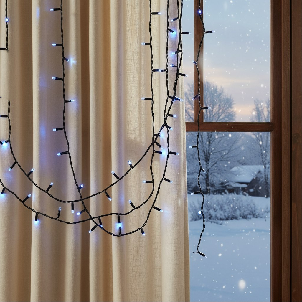 Свет гирлянды обладает уникальным спектром, отражающимся тёплым оттенком синего, создающим интригующее и загадочное впечатление. Гирлянда Uniel замечательно подходит для создания атмосферы ночного неба, моря или зимнего вечера. Материал изделия безопасен для здоровья и окружающей среды, не содержит вредных веществ. Гирлянда легко устанавливается с помощью клипс, скотча или подвесных аксессуаров. Гибкость кабеля позволяет размещать гирлянду на любых формах и углах, создавая необычные композиции.