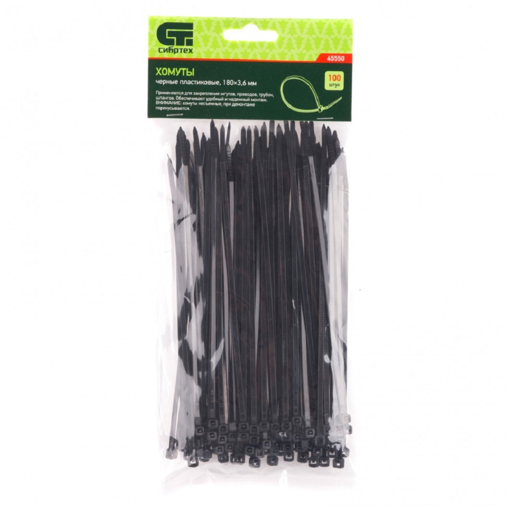 - Хомуты СИБРТЕХ пластиковые чёрные 3,6*180мм 100шт/уп