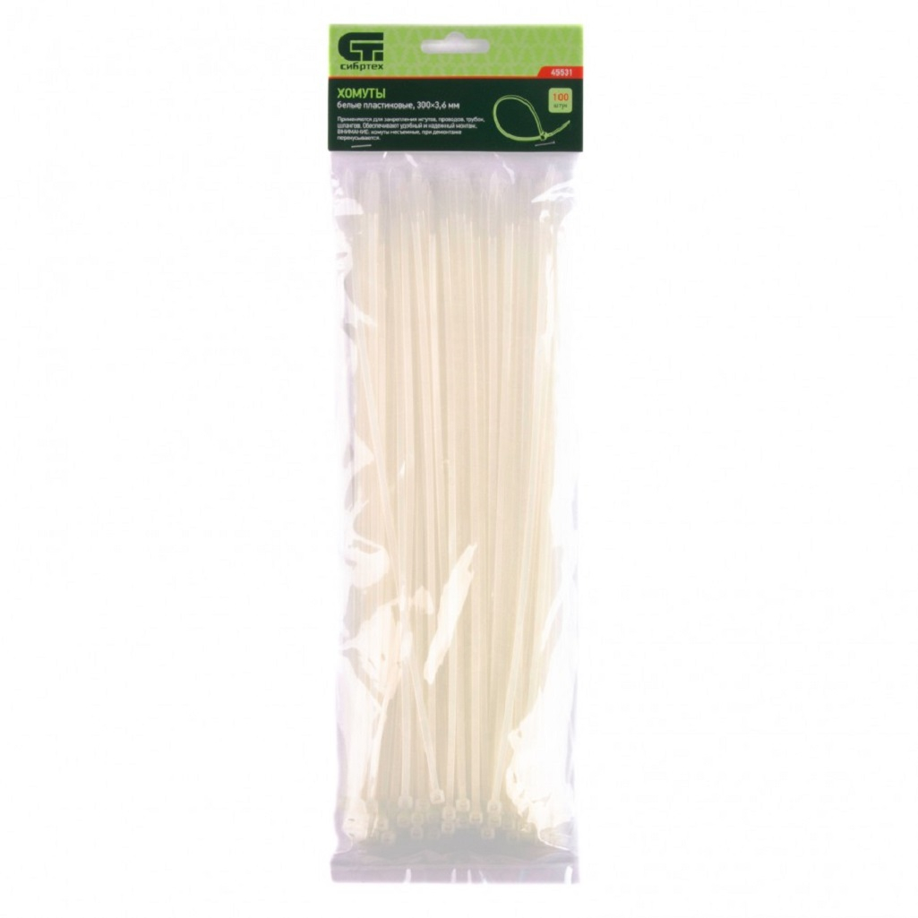 - Хомуты СИБРТЕХ пластиковые белые 3,6*300мм 100шт/уп