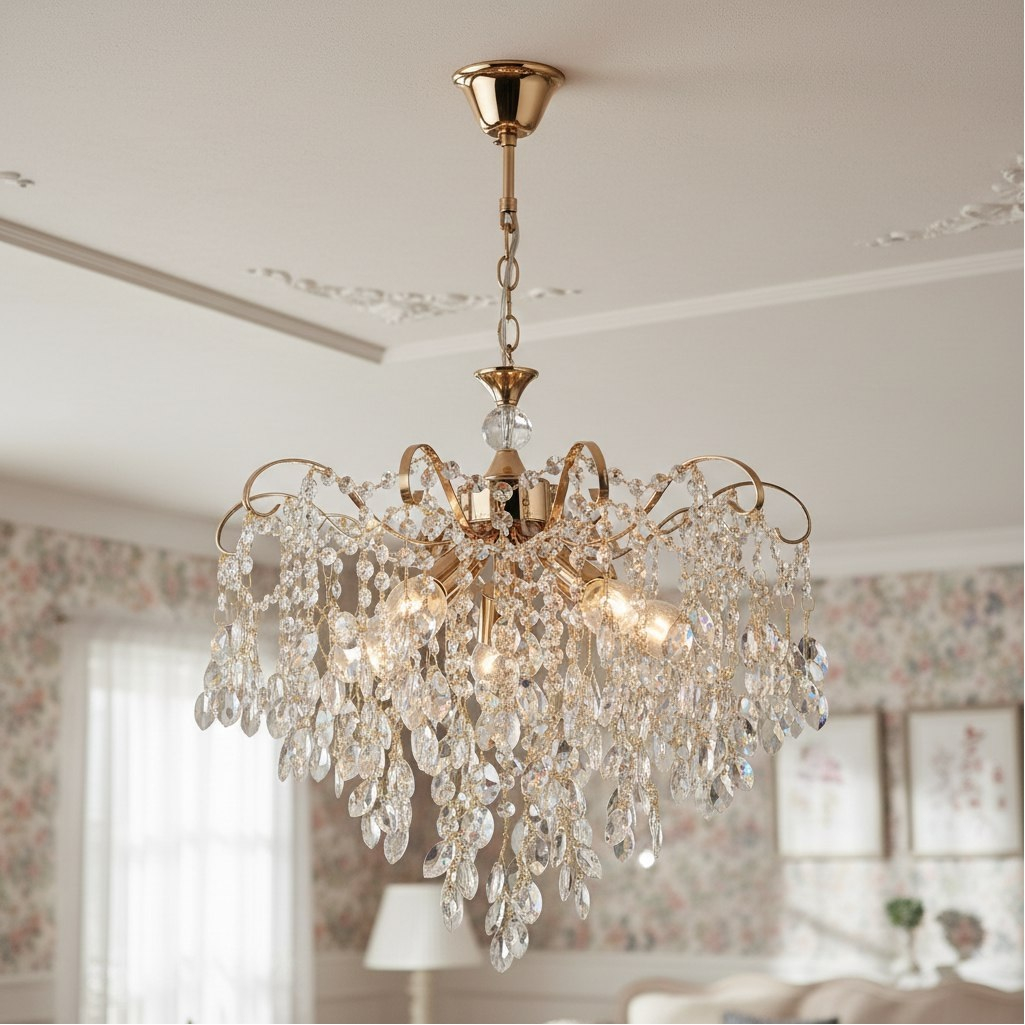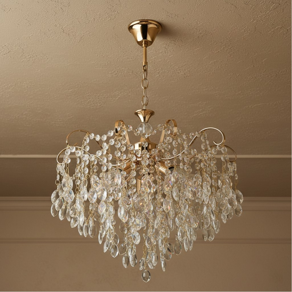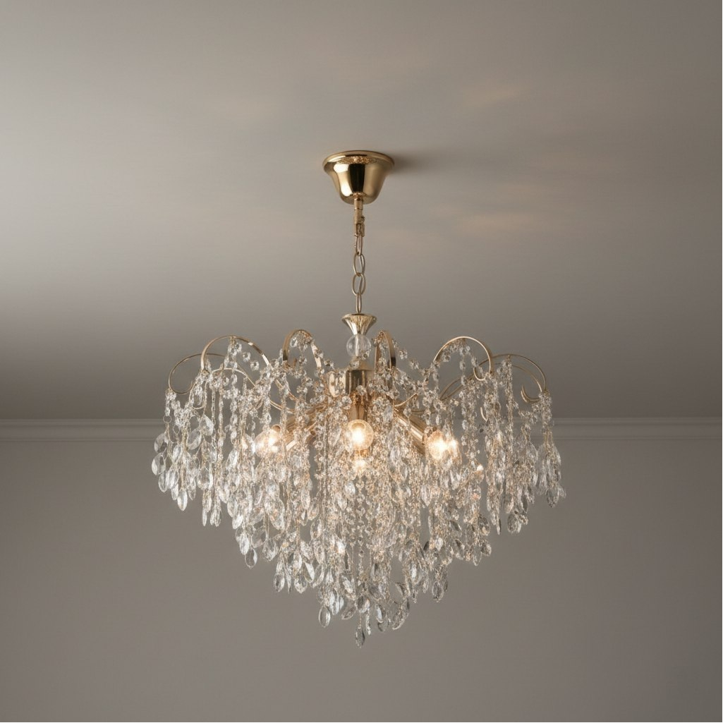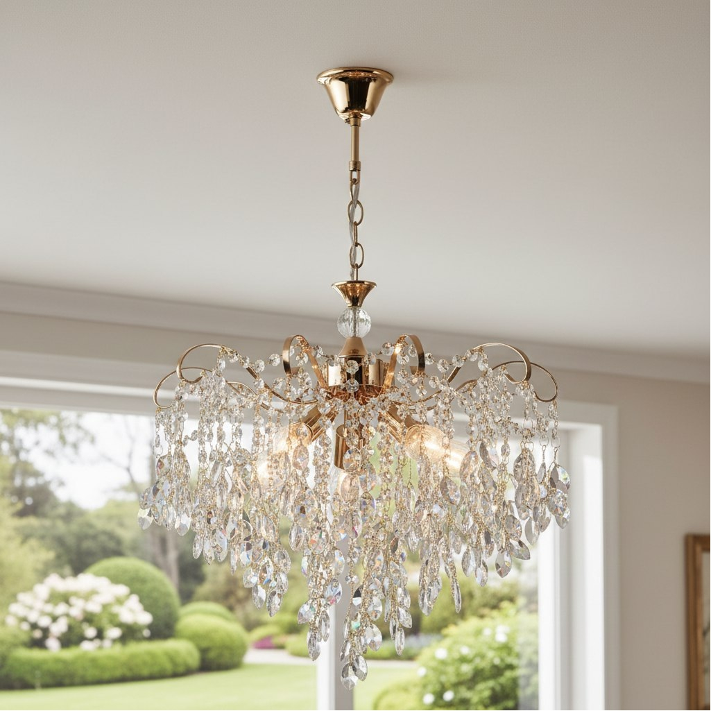 Основным достоинством изделия является применение хрустального декора. Ограненные подвески эффектно преломляют свет, создавая мягкое сияние и придавая помещению уют и визуальную глубину. Металлический каркас обеспечивает конструкции необходимую жесткость и устойчивость к нагрузкам. Защитно-декоративное покрытие сохраняет привлекательный внешний вид на протяжении всего срока эксплуатации. Светильник оснащен пятью рожками с патронами стандарта E14. Такое решение позволяет использовать лампы любого типа с соответствующим цоколем. Пять независимых источников света обеспечивают равномерное распределение освещения по всей площади комнаты без образования затемненных участков. При использовании современных светодиодных ламп энергопотребление существенно снижается без потери яркости свечения.