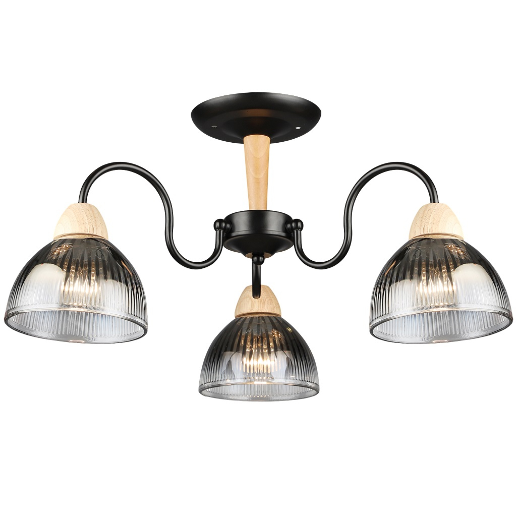 Описание люстры Reluce 69660-0.3-03 BK+WOOD, 3 лампы, 180 Вт, Е27