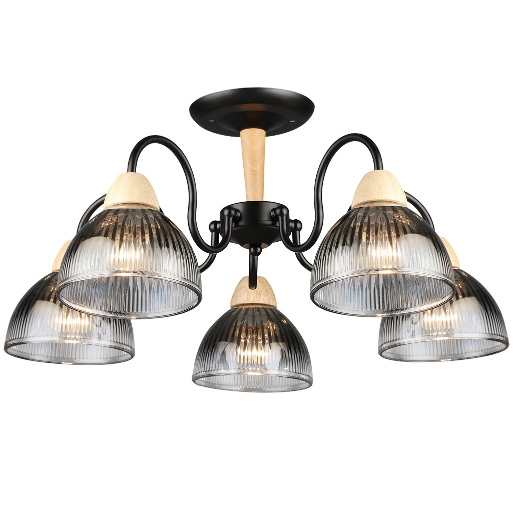 Описание люстры Reluce 69660-0.3-05 BK+WOOD, 5 ламп, 300 Вт, Е27