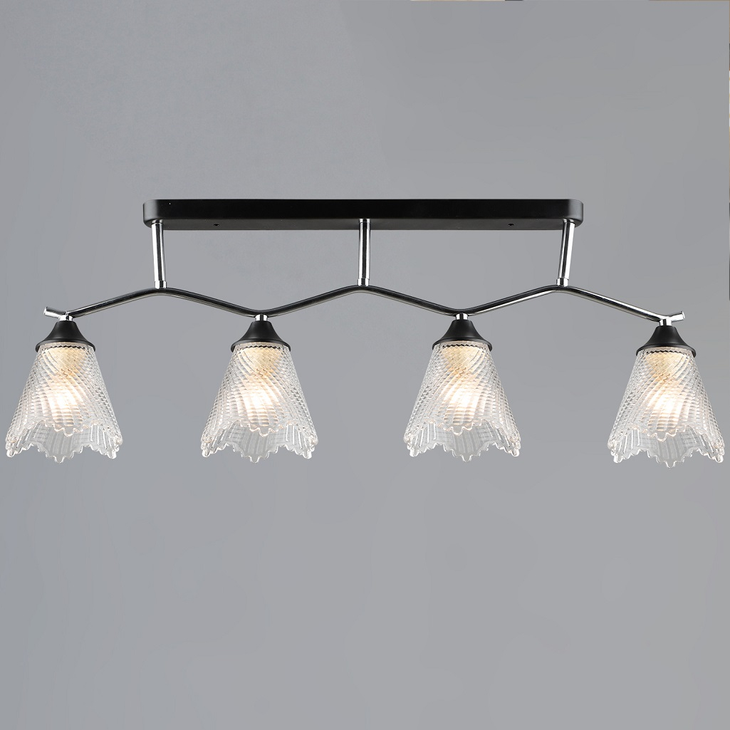 Светильник потолочный Reluce 77320-0.3-04 CH+BK, 4 лампы, Е27, 240 Вт, металл, стекло, до 24 кв.м предназначен для освещения различных помещений бытового назначения. Светильник способен освещать площадь до 24 кв.м. 4 лампы в плафонах из стекла размещаются на металлической планке, которая крепится на потолок при помощи монтажной пластины. Мощность одной лампы составляет 60 Вт, цоколь Е27, рассеиватель конусный. Лаконичный спокойный дизайн светильника удачно впишется в кухню, небольшой холл, в столовую. Несколько светильников помогуть создать гармоничную группу, которая ненавязчиво украсит собой помещение большой площади. Гарантия на изделие составляет 2 года.