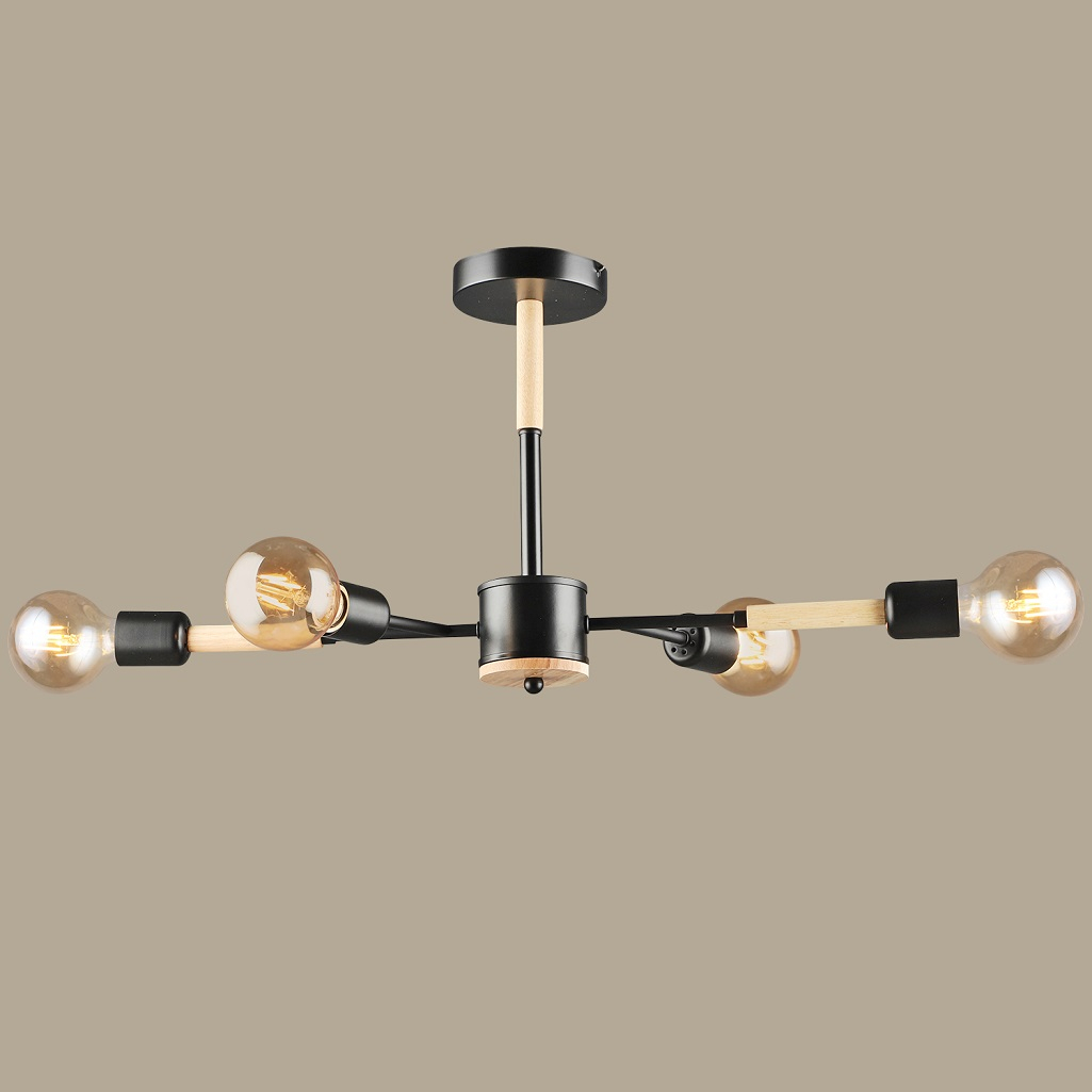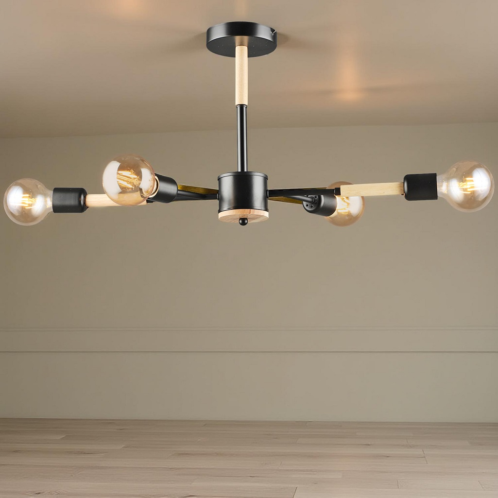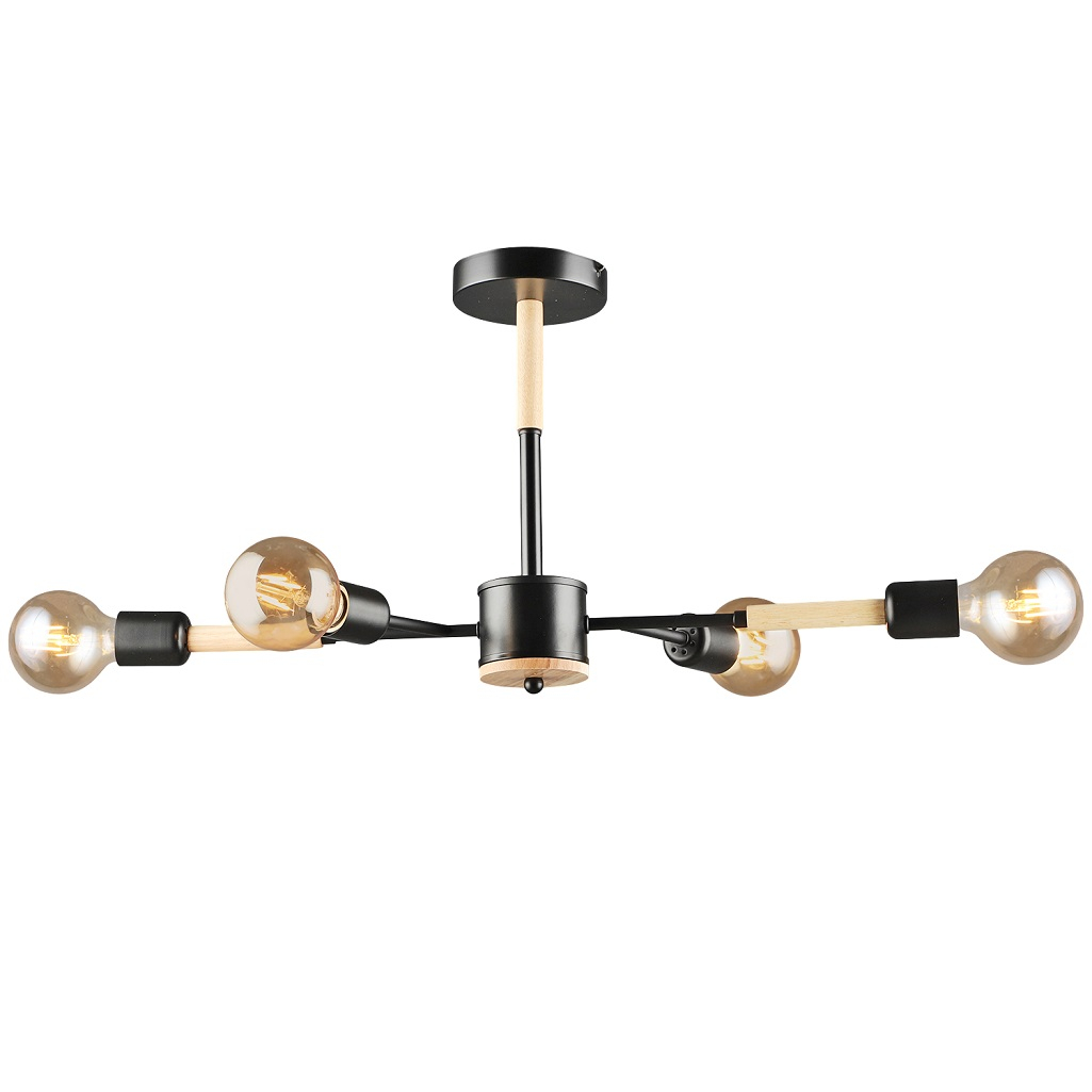 Светильник потолочный Reluce 99960-0.3-04 BK+WOOD, 4 лампы, 240 Вт, Е27, металл, дерево, до 24 кв.м