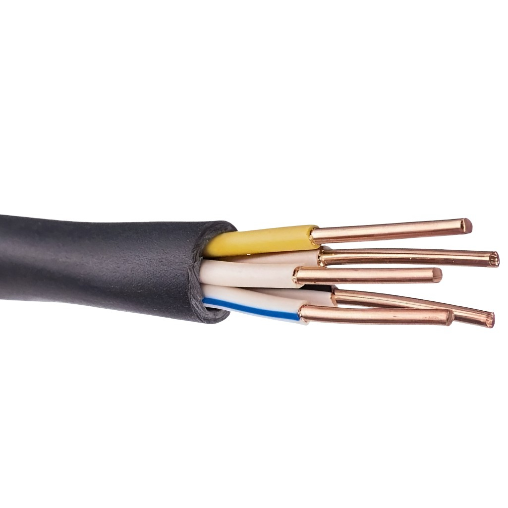 Кабель силовой медный ВВГ 5*6предназначен для передачи и распределения электроэнергии в неподвижных электротехнических установках с номинальным переменным напряжением до 1000 Вольт и частотой 50 Герц. Прокладывают ВВГ 5х6 без ограничения разности уровней по трассе прокладки, в том числе на вертикальных участках. Применяют кабели ВВГ в электрических сетях переменного напряжения с заземлённой или изолированной нейтралью, в которых продолжительность работы в режиме однофазного короткого замыкания на землю не превышает 8 ч, а общая продолжительность работы в режиме однофазного короткого замыкания на землю не превышает 125 ч за год. Кабелем ВВГ 5х6 прокладывают одиночные кабельные линии в кабельных сооружениях и помещениях, при групповой прокладке обязательно применение средств огнезащиты.