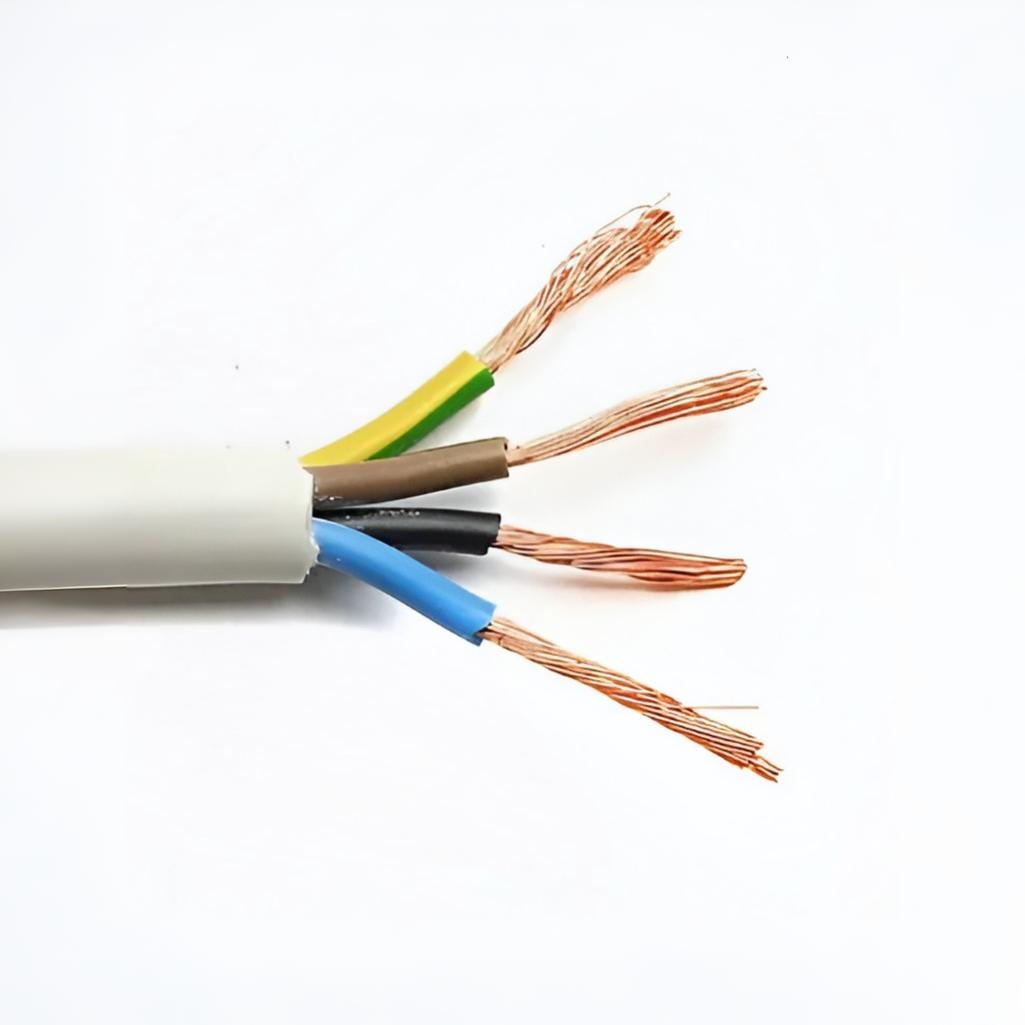 Провод силовой ПВС Москабель 4х2.5 кв.мм, установочный, белый с 4 медными многопроволочными жилами сечением 2,5 миллиметров квадратных, в изоляции и оболочке из ПВХ пластиката.