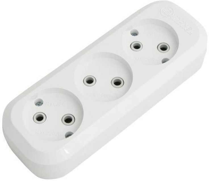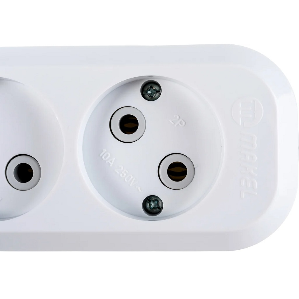 Колодка удлинителя 3-местная Makel 28917 MGP121, без заземления, белая, 1.3 кВт