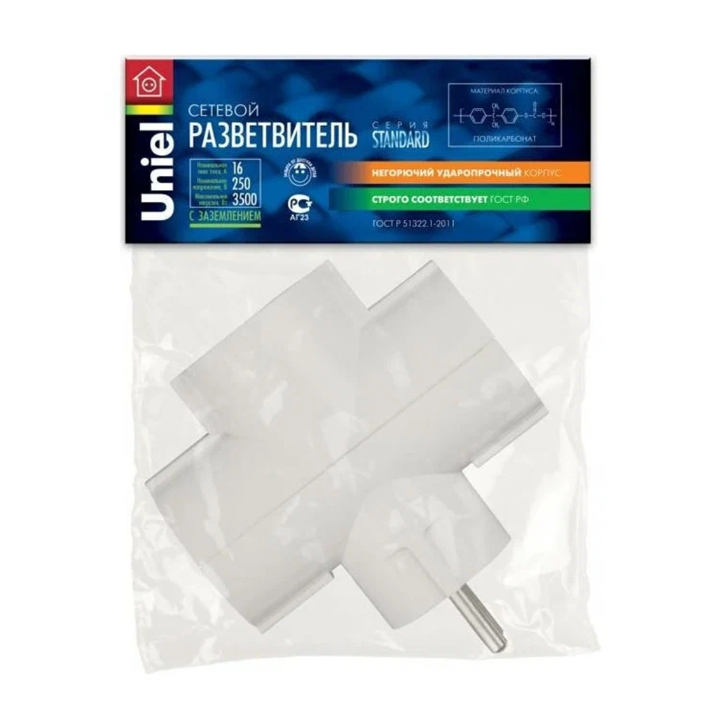 Разветвитель сетевой Uniel S-GES3-16T с заземлением, 3 розетки, 3.5 кВт