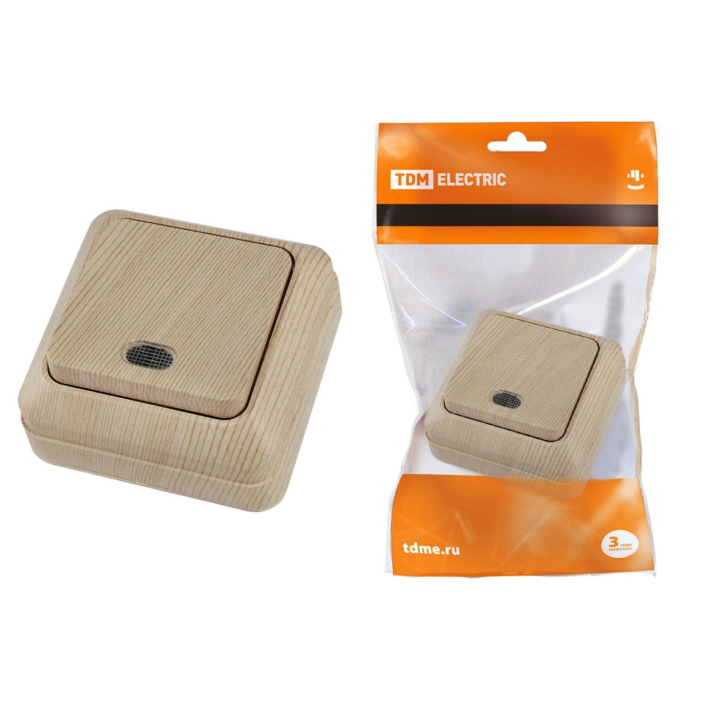 - Выключатель "Ладога" TDM 1-кл. открытой установки с подсветкой IP20 10А, сосна