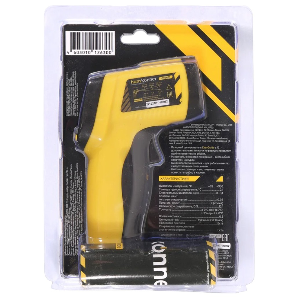 Технические характеристики пирометра Hanskonner EasyGuide HTR0001 инфракрасный термометр
