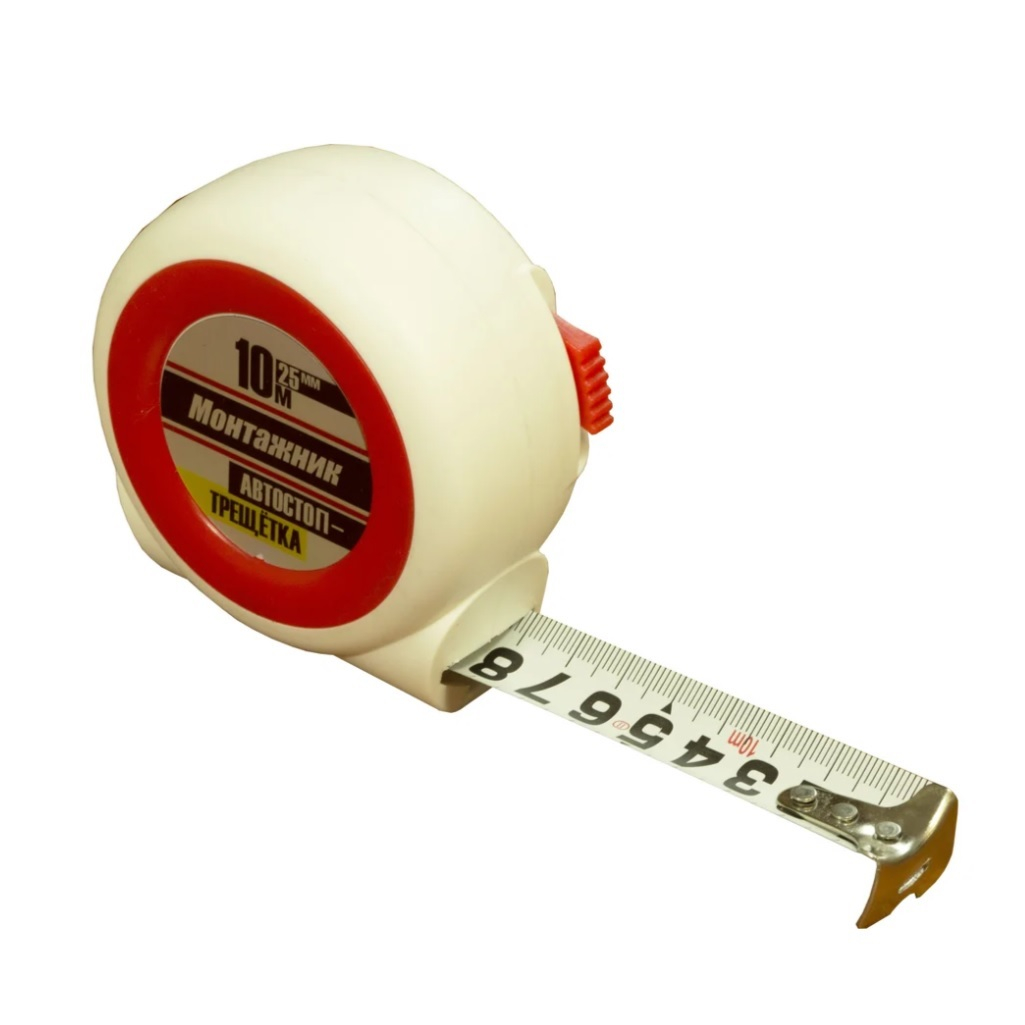 Рулетка Монтажник 604025, автостоп, клипса для крепления, 25 мм х 10 м