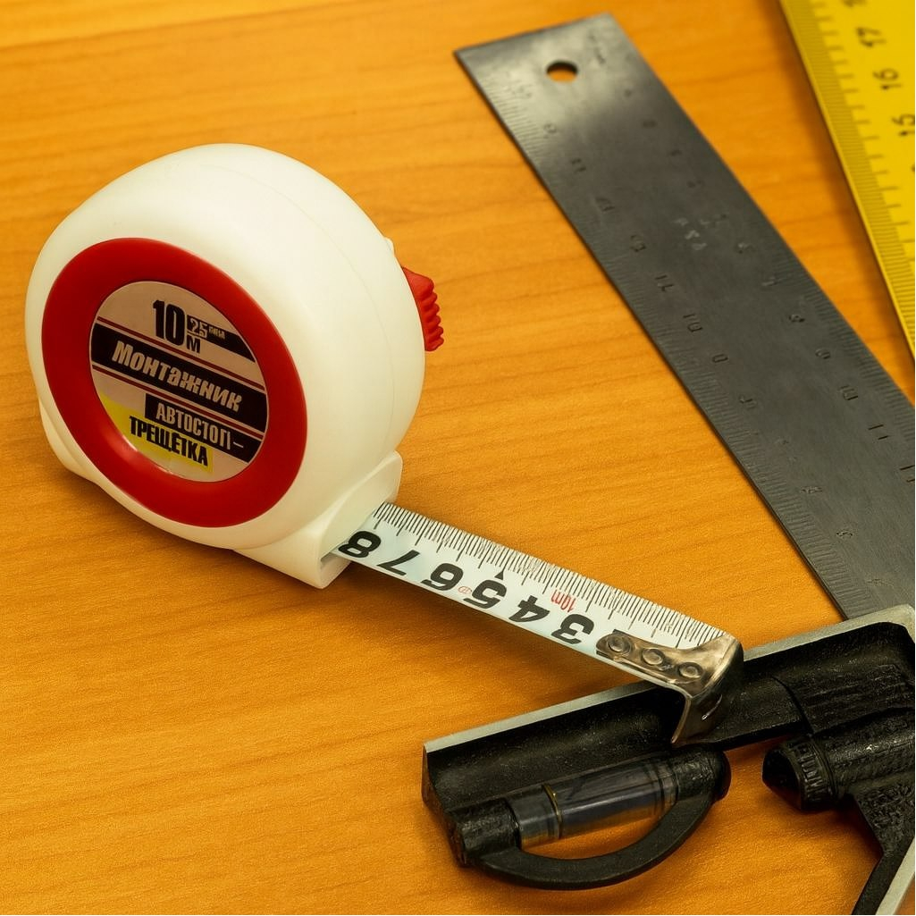 Рулетка Монтажник 604025, автостоп, клипса для крепления, 25 мм х 10 м является незаменимым помощником профессионалов-электромонтажников, строителей и домашних мастеров, позволяя упростить выполнение повседневных задач и повысить эффективность труда. Специальный фиксатор обеспечивает удобное использование рулетки одной рукой. Когда вам нужно замерить длину, просто вытяните ленту до нужного расстояния и нажмите кнопку фиксации. Она надёжно удержит ленту на месте, пока вы делаете отметку или производите измерения. Эта опция особенно полезна при работе одному, когда вторая рука занята инструментом или другим оборудованием.