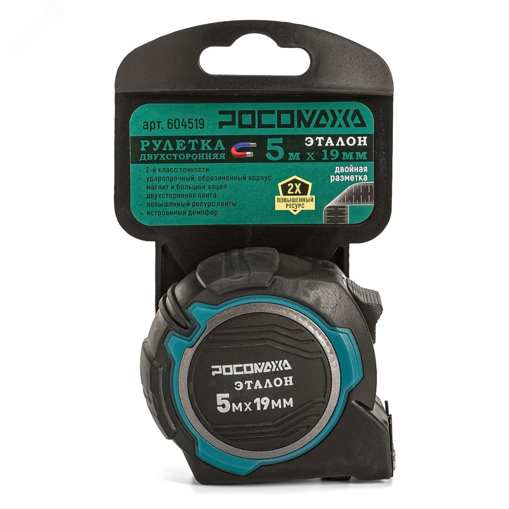 Рулетка двусторонняя Росомаха Эталон 604519, с устойчивой лентой и магнитом, 5 м х 19 мм