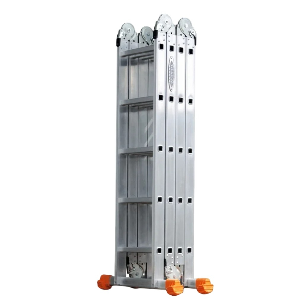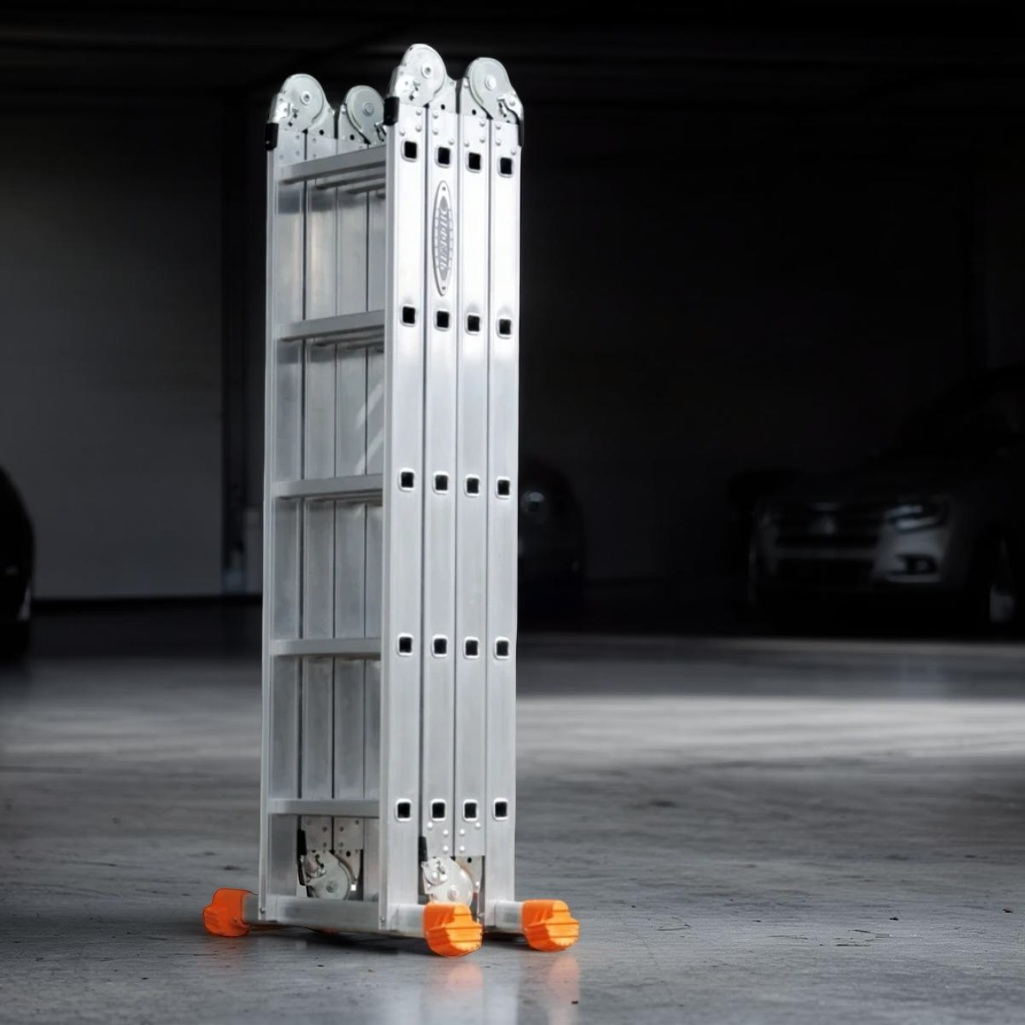 Лестница трансформер Эйфель Классик, алюминиевая, 4х5 ступеней, 4 секции, нагрузка до 150 кг - это универсальное решение для дома и профессиональных нужд. Изготовленная из прочного алюминия, она обеспечивает надежность и долговечность. Благодаря возможности трансформации, эта лестница легко адаптируется под различные задачи: используйте её как приставную лестницу, стремянку, платформу или лестницу с выносом.