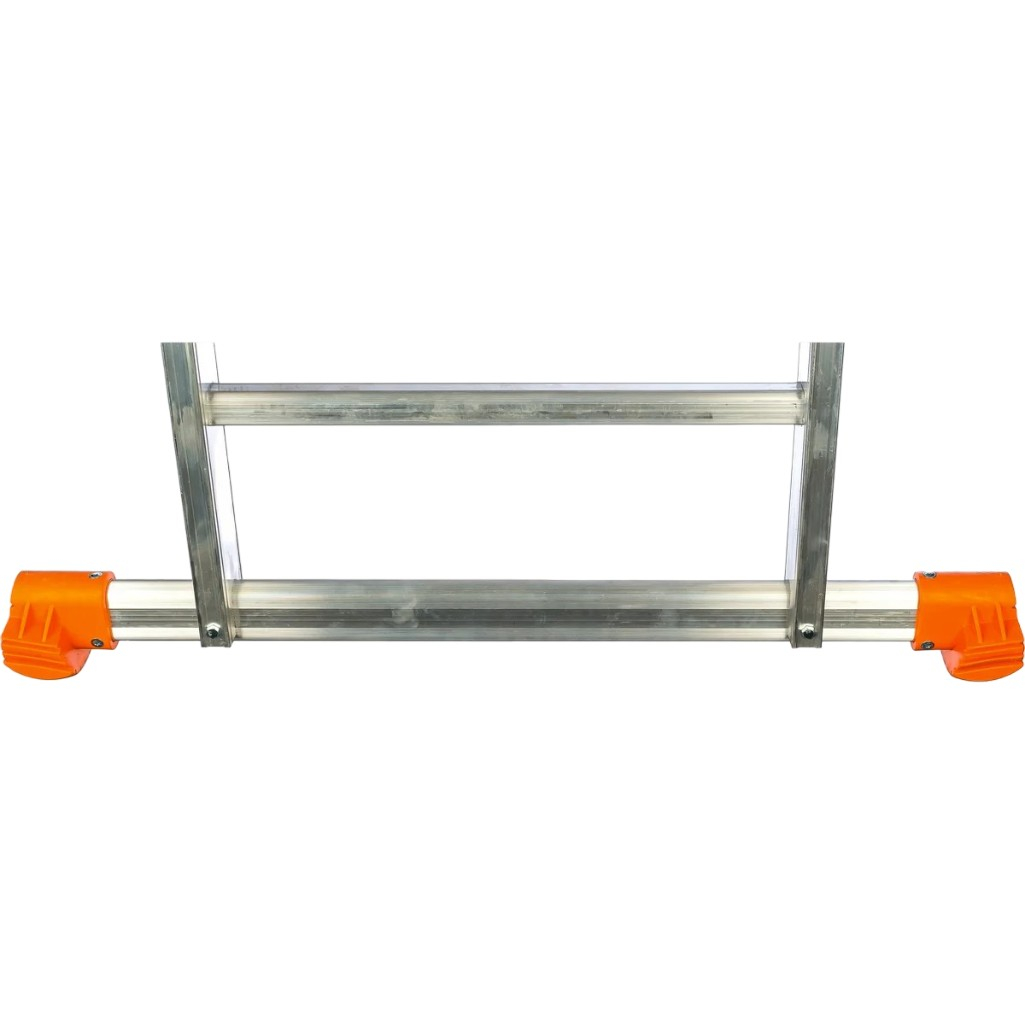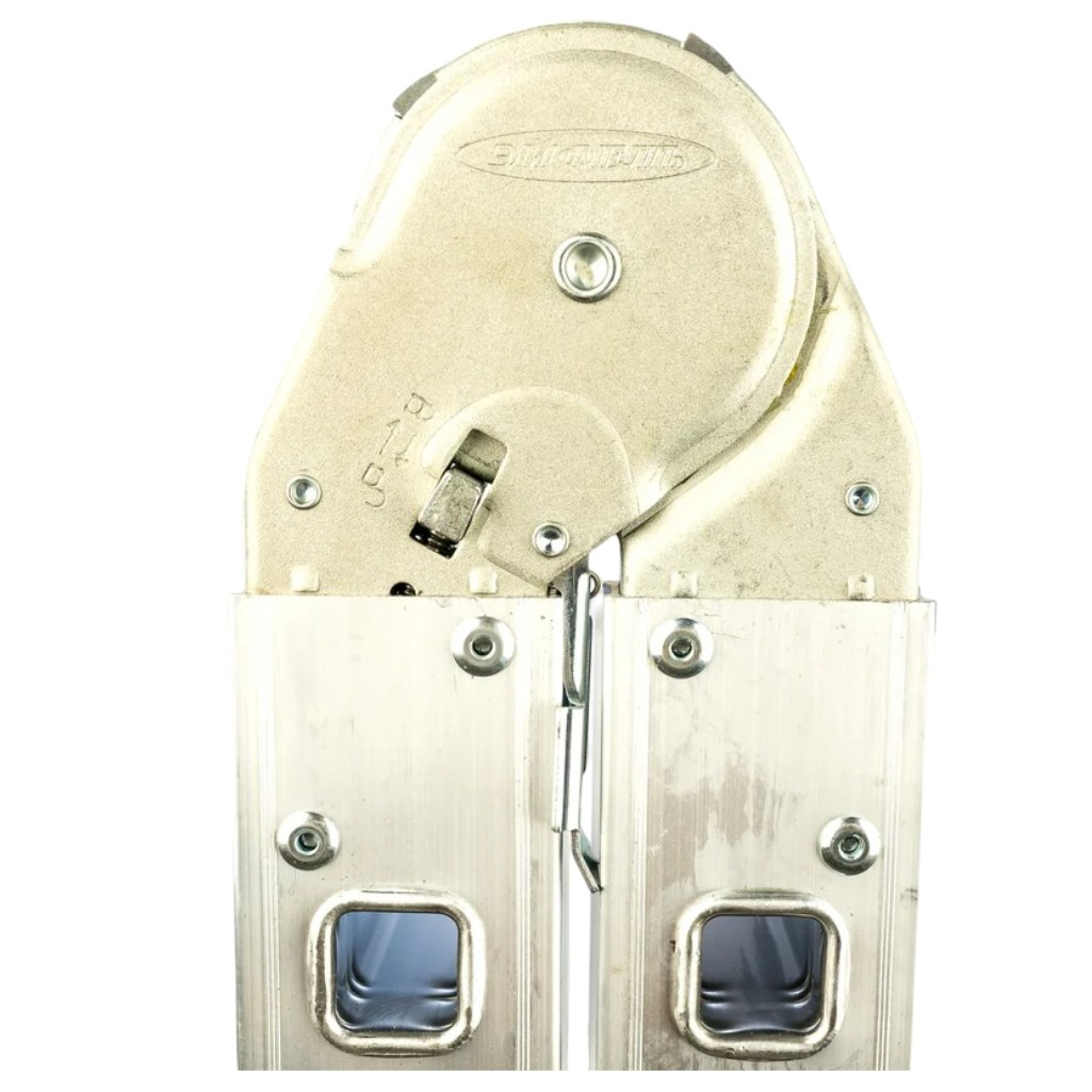 Автоматические стопорные шарниры гарантируют надежную фиксацию в выбранной конфигурации, обеспечивая уверенность в каждом шаге. Лестница состоит из 4 секций, каждая из которых имеет по 5 ступеней, что позволяет работать на высотах от 3,63 до 6,51 метров. Максимальная нагрузка составляет 150 кг, что делает её подходящей для большинства пользователей.