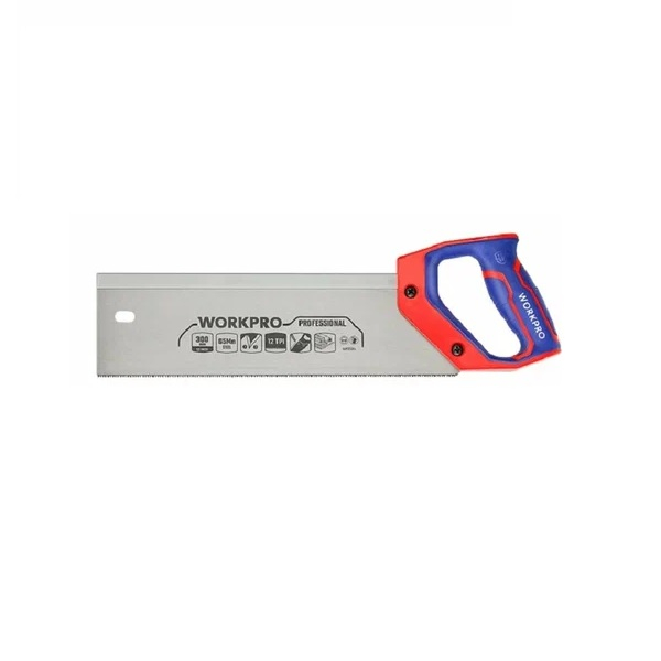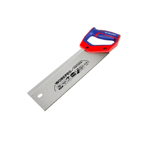 Ножовка для стусла Workpro - столярный инструмент для тонких и точных пропилов и изготовления пазов для соединения деревянных деталей в стык и в паз при изготовлении мебели и других столярных и плотницких работах. Обушок придаёт жёсткость тонкому пильному полотну. Имеет острые шлифовальные мелкие зубья с двухсторонней заточкой. Используется со стуслом.