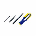 Рукоять инструмента выполнена из двухкомпонентного материала, что обеспечивает комфорт при длительном использовании, предотвращая скольжение. Биты, изготовленные из прочной стали, гарантируют высокую устойчивость к износу и долговечность. В комплект входят три двухсторонние биты с различными наконечниками: PH2/SL6, PH1/SL5, HEX6/HEX8, что позволяет использовать отвертку для различных задач — от слесарных до столярных работ.