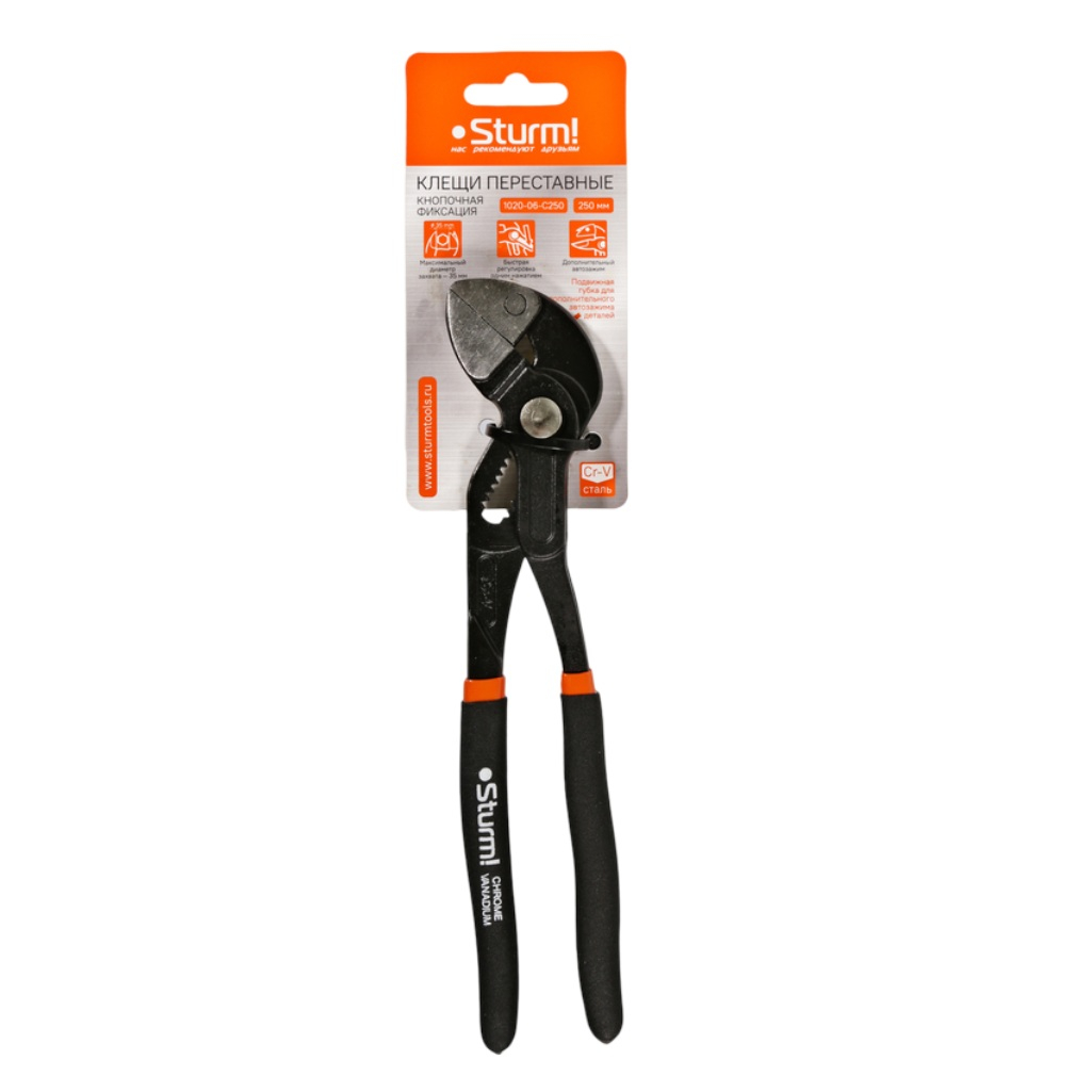Клещи переставные STURM 1020-06-250SP, кнопочный шарнир, длина 250 мм