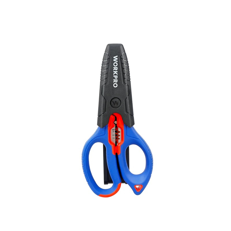 Ножницы электрика WORKPRO WP294003 имеет 5 отверстий для зачистки 10-18AWG. Лезвия изготовлены из нержавеющей стали, термически обработаны, прочные и долговечные. Имеют защитные пластиковые губки для лезвий для удобного хранения и безопасности.