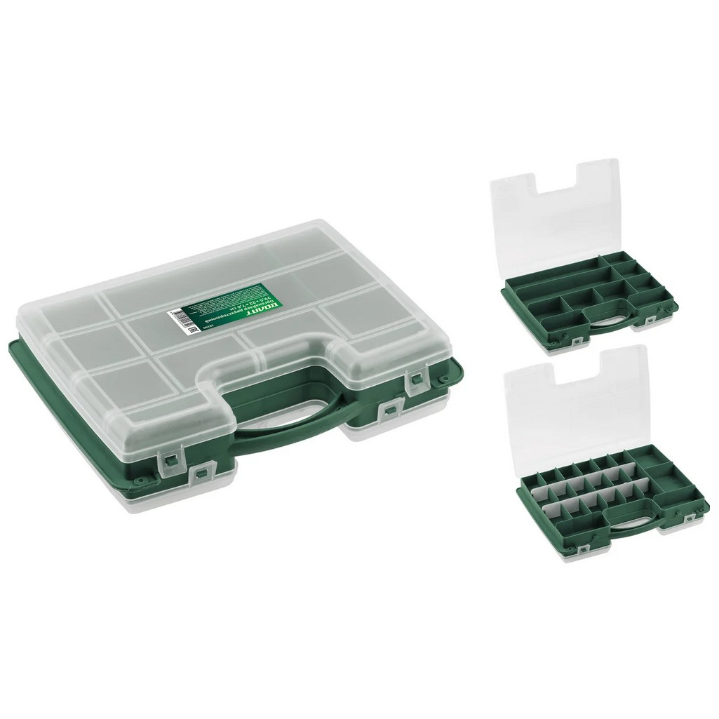 Органайзер для крепежа Волат 20250, двухсторонний, с размерами 295x220x76 мм, специально предназначен для удобного хранения и переноски крепежных и других мелких изделий. В нём удобно размещаются необходимые аксессуары и различные мелочи, обеспечивая их быстрый доступ и порядок. Прозрачная крышка органайзера позволяет легко видеть расположение крепежа внутри, что значительно упрощает поиск нужных элементов. На одной стороне органайзера расположено десять отделений, а на другой — двадцать два, что позволяет эффективно организовать и хранить различные по размеру и форме предметы. Этот органайзер станет надежным помощником как для профессионалов, так и для любителей, обеспечивая удобство и эффективность в организации рабочего пространства и транспортировки мелких деталей и инструментов.