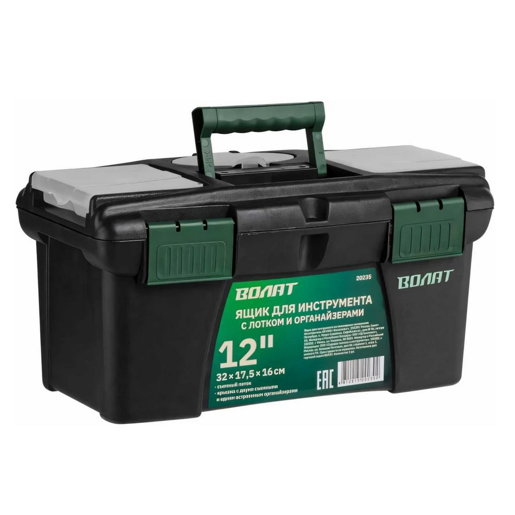 Ящик для инструментов Волат 12 20235, пластиковый, черный, 320х175х160 мм