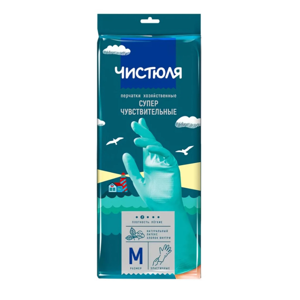 Перчатки хозяйственные Чистюля, суперчувствительные, латекс, размер М - это лёгкие перчатки из натурального латекса (природного каучука, натуральной резины). Перчатки не сковывают движения, создают эффект «перчатки без перчаток». Повышенный процент латекса в составе обеспечивает прочность и повышенную эластичность. Тонкодисперсное, плотное и стойкое, не слипается при хранении. Перчатки хорошо садятся по руке.