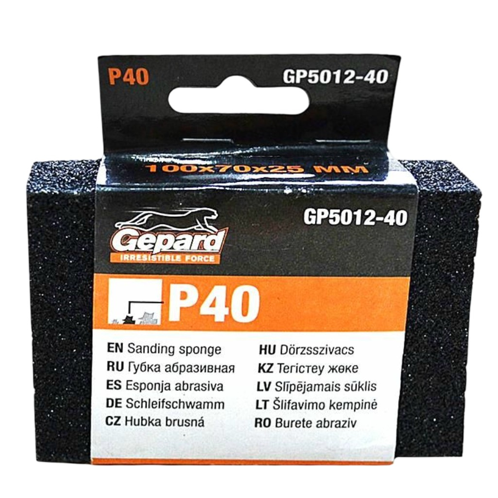 Губка абразивная Gepard GP5012-40, шлифовальная, размер 70х100 мм, Р40, ручное шлифование
