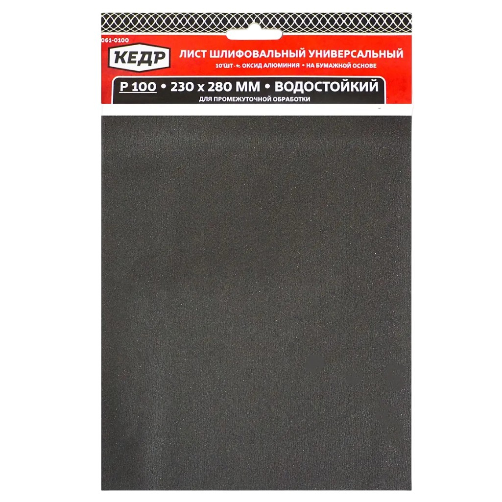 Лист шлифовальный Кедр 061-0100, водостойкий, размер 230х280 мм, Р100, в упаковке 10 шт
