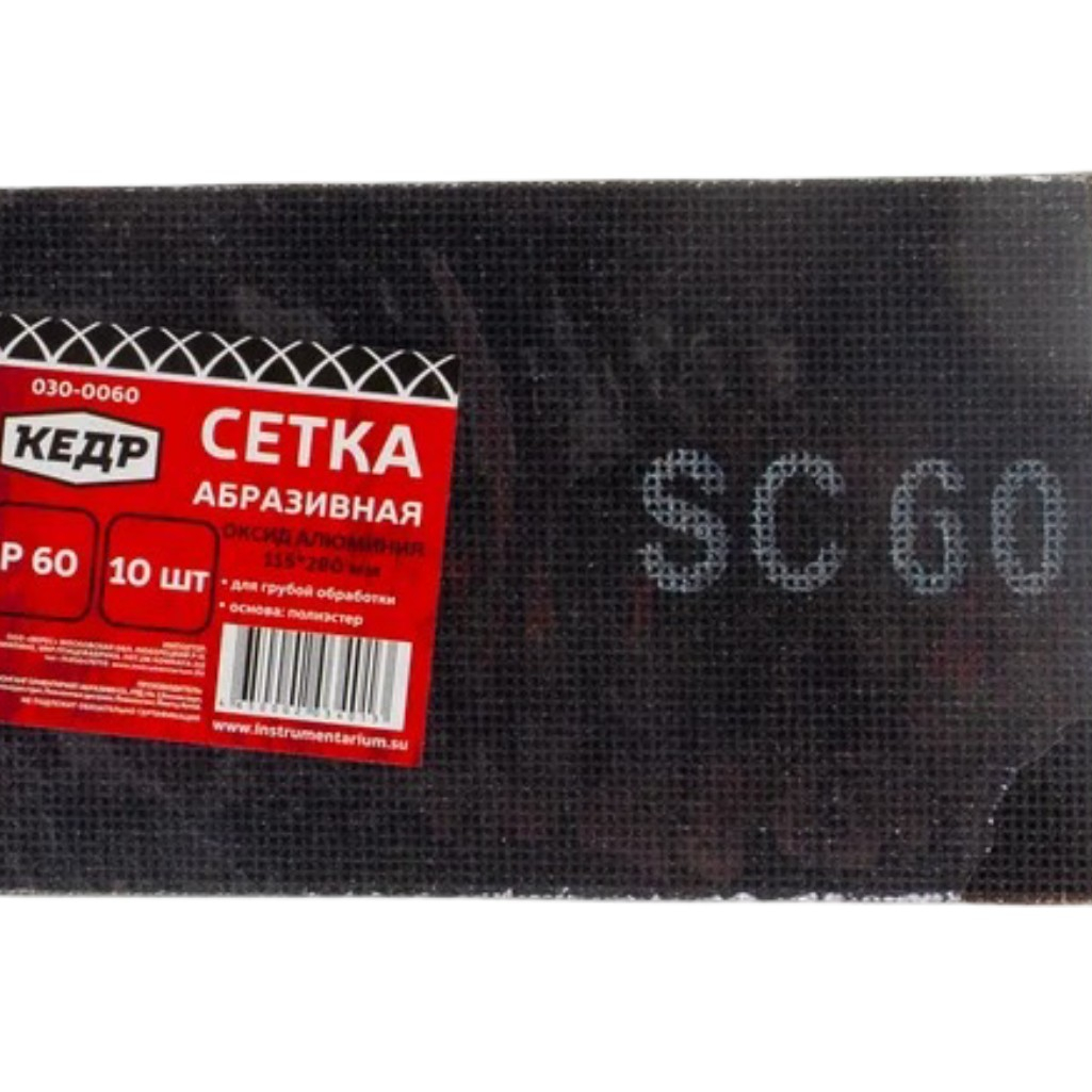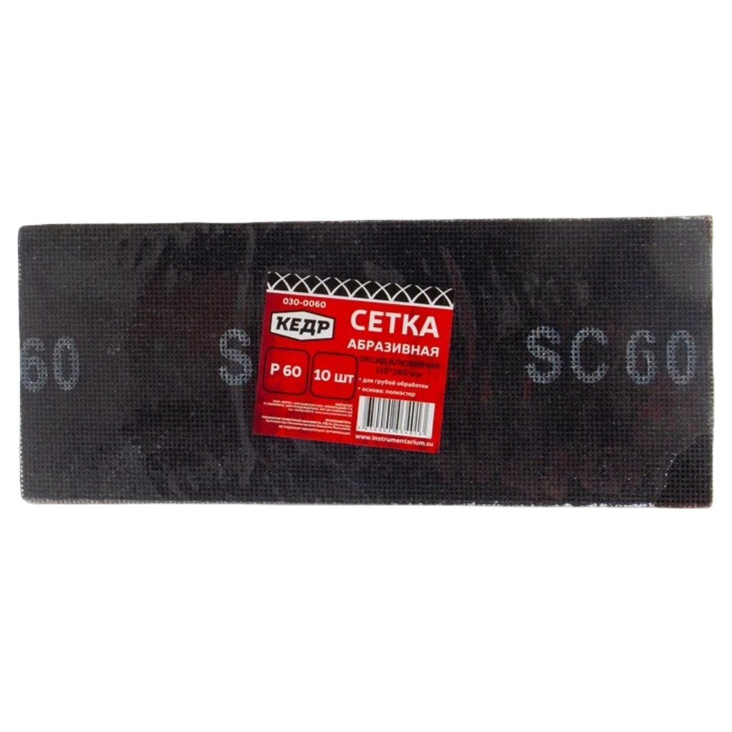 Описание сетки Кедр 25345, размер 115х280 мм, Р60, для шлифмашин, в упаковке 10 шт