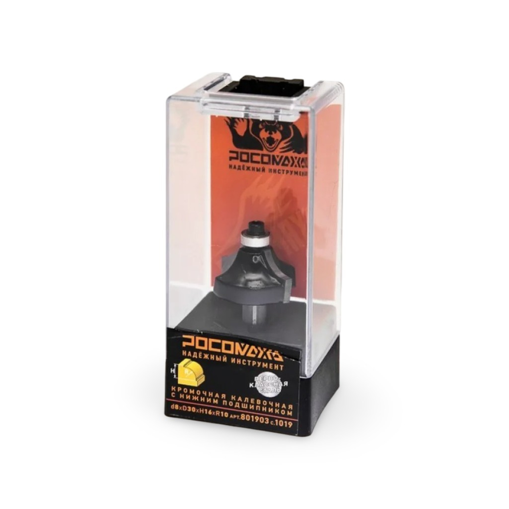 Описание фрезы кромочной калевочной Росомаха d8 мм, D30 мм, H16 мм, R10, с нижним подшипником 801903