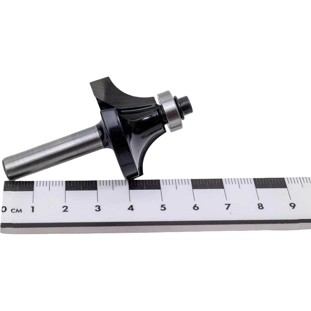 Фреза концевая Росомаха, d8 мм, D35 мм, H18 мм, R12 мм, кромочная, 801709 — это инструмент для ручных фрезеров и фрезерных станков, предназначенный для создания декоративной фигурной кромки (калевки) на деревянных деталях.