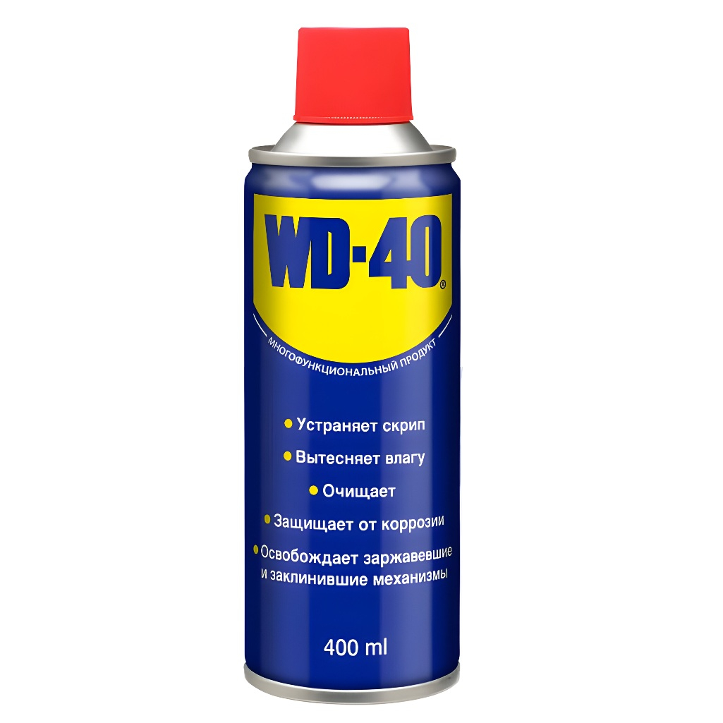 Средство смазочное WD-40 универсальное, аэрозольный баллон, 400 мл эффективно удаляет растительные соки, смолы, клейкие вещества, липкие этикетки и ленты с разных поверхностей, не повреждая лакокрасочное покрытие. Также он отлично справляется с размазавшимися насекомыми на лобовом стекле и кузове автомобиля. Средство подходит для очистки инструментов, оборудования и транспортных средств. Например, WD-40 легко удаляет жевательную резинку с коврового покрытия: достаточно распылить аэрозоль, подождать и протереть чистой тканью. Средство WD-40 проникает в структуру заржавевших и застрявших винтов, ослабляя их; очищает резьбу шарниров и защищает от коррозии; смазывает и устраняет скрипы; вытесняет влагу и удаляет остатки клея. Средство смазочное WD-40 не содержит силикона.