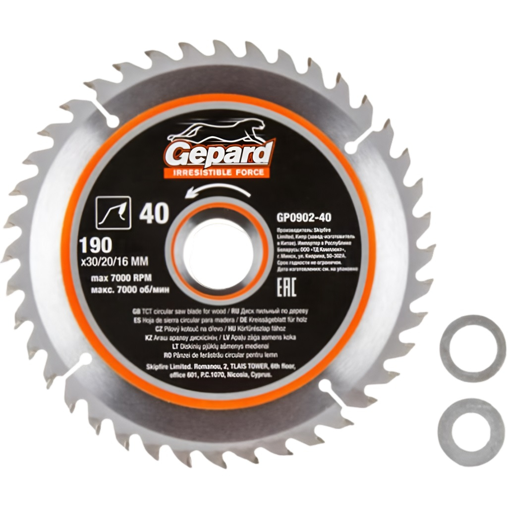 Диск пильный по дереву Gepard GP-0902-40, 190х30/20/16, 40 зубьев