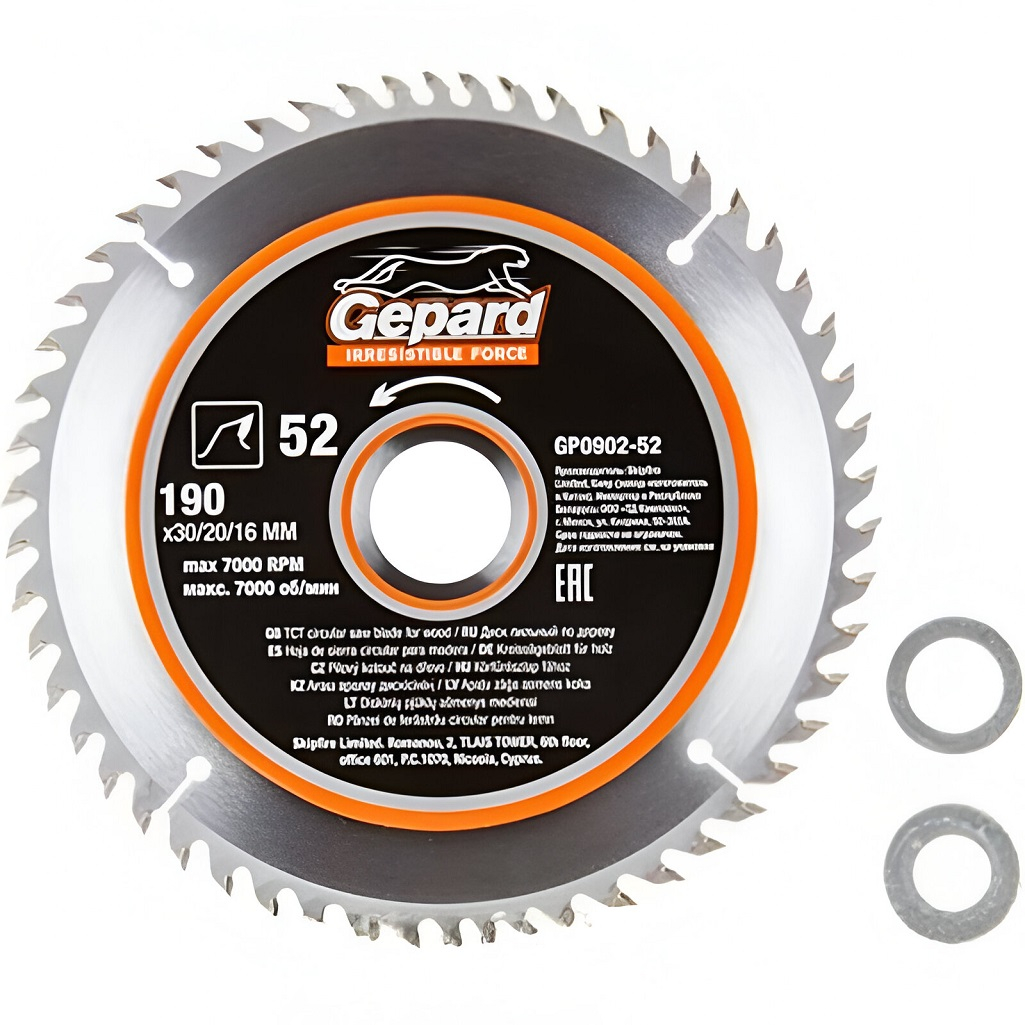Диск пильный по дереву Gepard GP-0902-52, 190х30/20/16 мм, 52 зубья