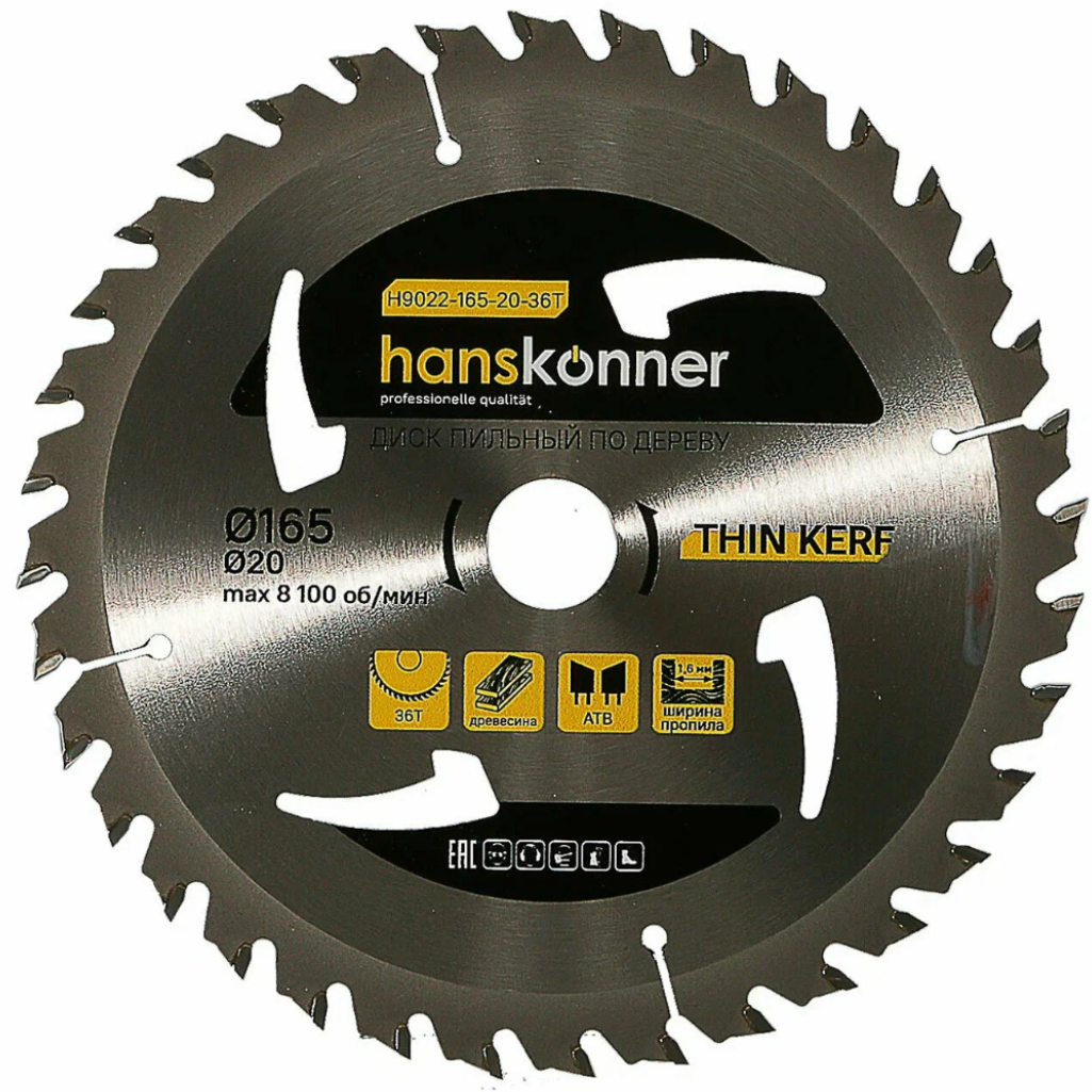 Диск пильный по дереву Hanskonner THIN KERF H9022-165-20-36T, 165х20 мм, 36 зубьев