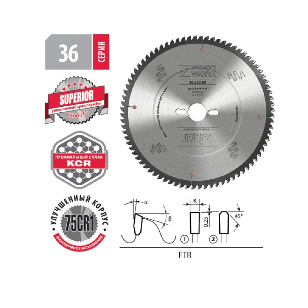 - Диск пильный WOOD WORK 250*30*Z80 36.250.80
