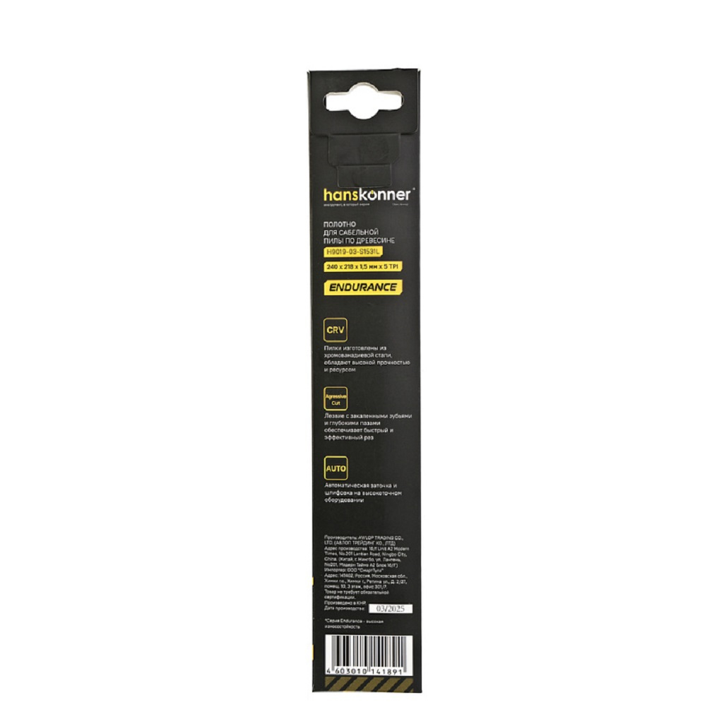 Описание полотна для сабельной пилы Hanskonner H9019-03-S1531L по дереву, длина 240 мм