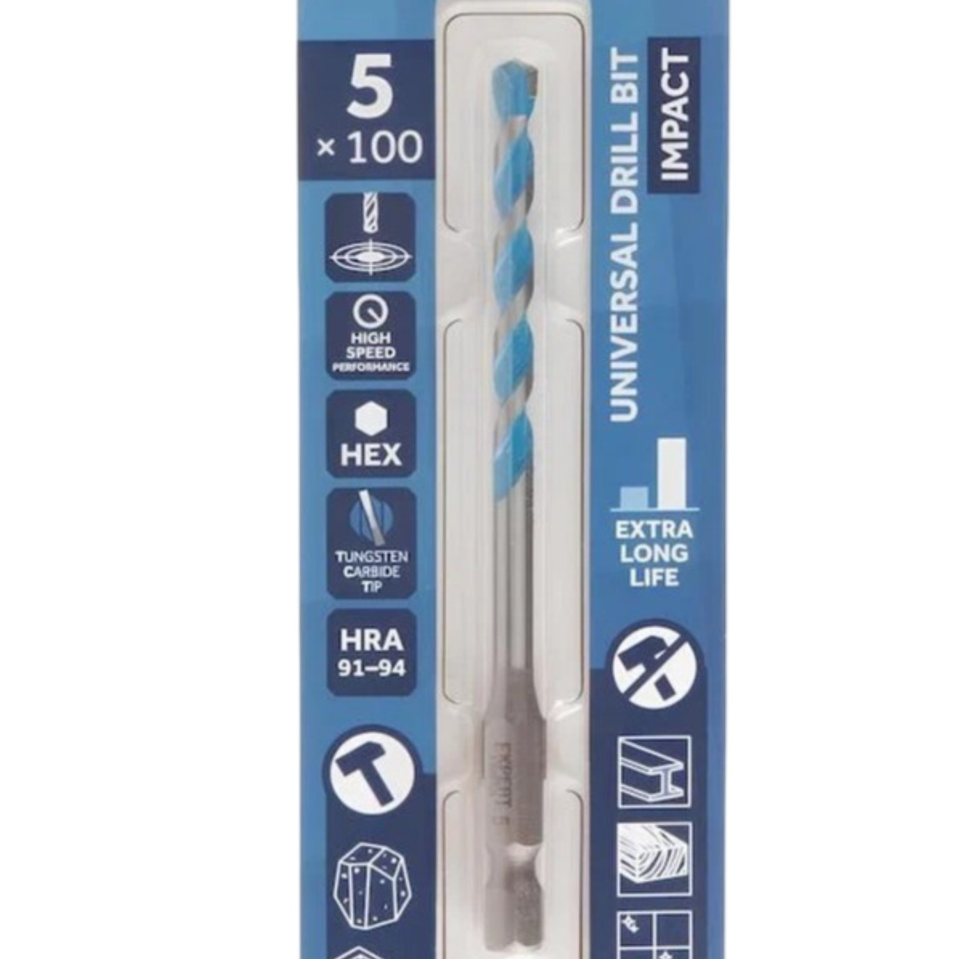 Сверло универсальное Startul Expert MultiFunctional SE8303-50, диаметр 5 мм предназначено для широкого спектра сверлильных операций в различных материалах, включая бетон, кирпич, черепицу, газобетонные блоки, мягкую и цветную сталь, керамическую плитку средней твёрдости, древесину и ПВХ. Он может работать как в ударном, так и в безударном режимах. Специальная форма спирали обеспечивает быстрое удаление отходов сверления, что повышает эффективность инструмента и продлевает срок его службы. Максимальные обороты в минуту RPM составляют 500 при сверлении керамической плитки, 2000 при работе с бетоном, кирпичом и деревом. Спиральная форма сверла обеспечивает эффективное удаление стружки, что способствует увеличению скорости работы и продлевает срок службы инструмента.