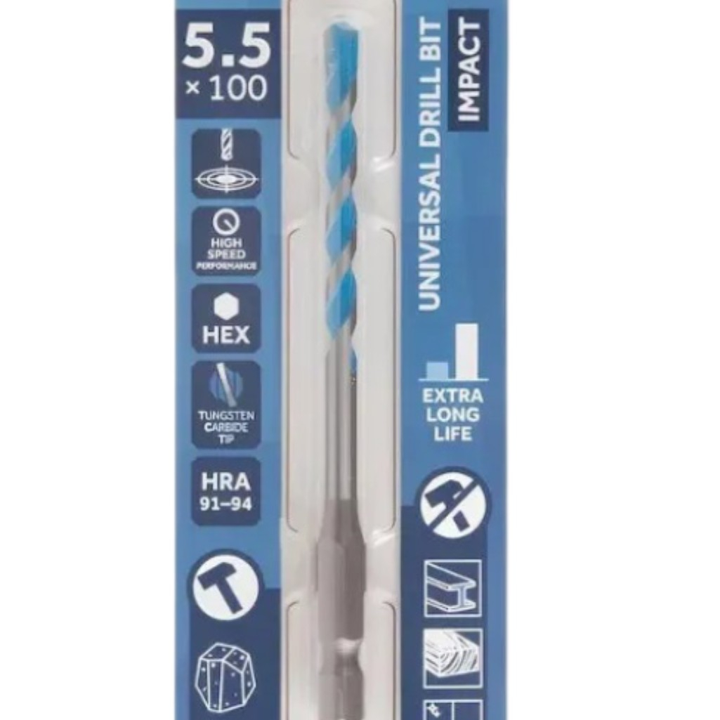 Сверло универсальное Startul Expert MultiFunctional SE8303-55, диаметр 5.5 мм предназначено для широкого спектра сверлильных операций в различных материалах, включая бетон, кирпич, черепицу, газобетонные блоки, мягкую и цветную сталь, керамическую плитку средней твёрдости, древесину и ПВХ. Он может работать как в ударном, так и в безударном режимах. Специальная форма спирали обеспечивает быстрое удаление отходов сверления, что повышает эффективность инструмента и продлевает срок его службы. Максимальные обороты в минуту RPM составляют 500 при сверлении керамической плитки, 2000 при работе с бетоном, кирпичом и деревом. Спиральная форма сверла обеспечивает эффективное удаление стружки, что способствует увеличению скорости работы и продлевает срок службы инструмента.