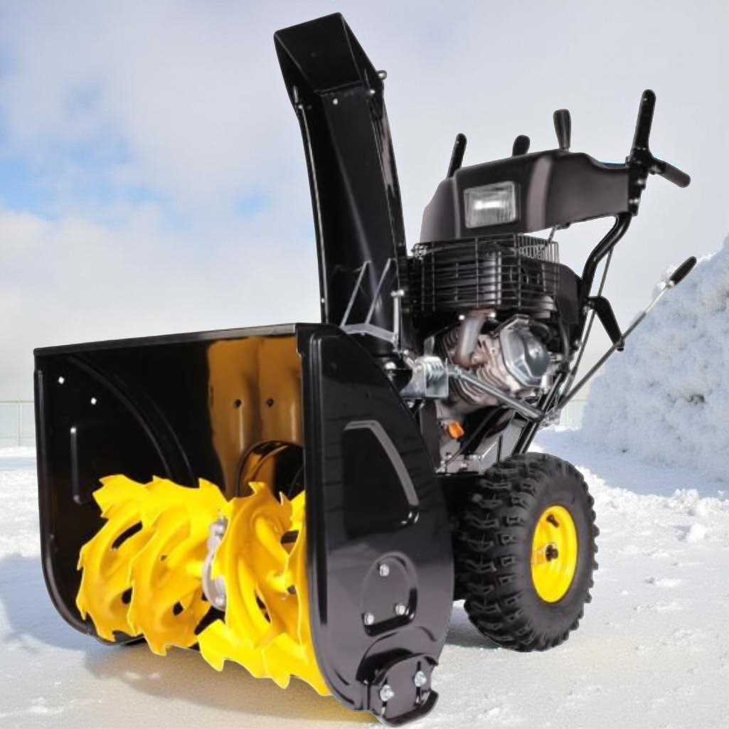 Снегоуборщик бензиновый Champion ST861E, двухступенчатый, металлический шнек, 7400 Вт предназначен для уборки территорий от снега и применяется исключительно на ровных поверхностях с твердым покрытием. Приводится в движение при помощи бензинового двигателя внутреннего сгорания. Подходит для сложных задач. Металлические шнеки перемалывают слежавшийся и обледенелый снег. 4-тактный двигатель Champion с верхним расположением клапанов обеспечивает высокую производительность. 6 скоростей вперед и 2 скорости назад позволяют оператору выбирать оптимальную скорость для работы в зависимости от глубины снега. Металлический желоб выброса гарантирует долговечность устройства. Металлический ковш и шнек эффективно справляются с любым типом снега. Разблокировка колес шплинтом улучшает маневренность снегоуборщика, позволяя легко маневрировать на узких участках. Направление выброса регулируется рукояткой, вынесенной к оператору, а угол поворота желоба составляет 190 градусов. Дальность выброса настраивается с помощью рукоятки на панели управления. Металлические полозья с регулировкой высоты защищают поверхность и позволяют работать на различных покрытиях, включая плитку и брусчатку. Двухсторонняя конструкция полозьев увеличивает их срок службы. Электрический стартер на 220 В обеспечивает легкий запуск двигателя при любых температурах. В случае теплого двигателя можно воспользоваться пусковой рукояткой для запуска. Фара позволяет работать в темное время суток. Пневмоколеса с агрессивным протектором обеспечивают отличное сцепление с поверхностью, легкость управления и простоту обслуживания.