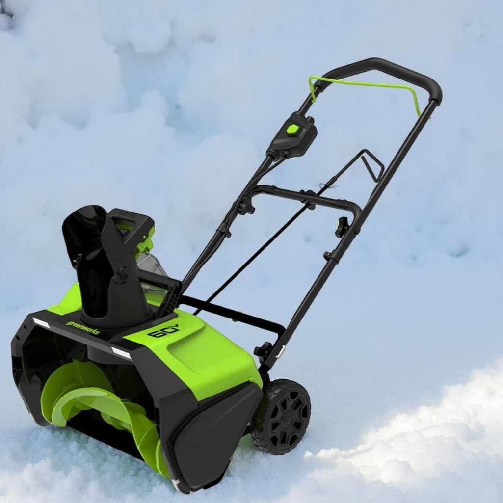 Описание снегоуборщика Greenworks GW GD60PST одноступенчатый, шнек пластик, 60В, 1 АКБ+з.у.