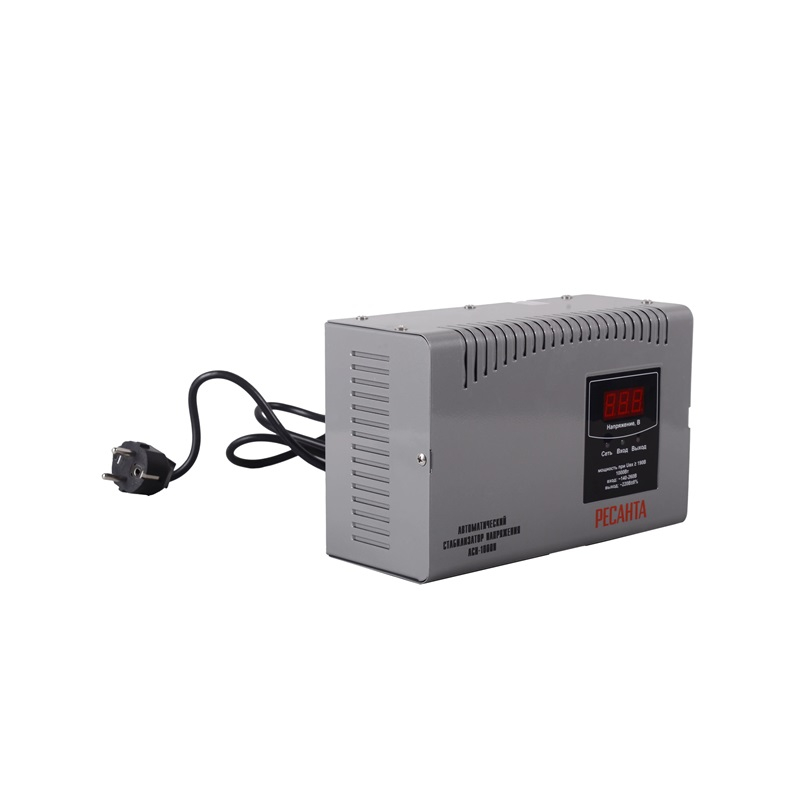 Стабилизатор Ресанта АСН-1000 Н будет полезен в загородном доме, служебных помещениях с нестабильным электропитанием. Устройство мгновенно реагирует на превышение рабочего диапазона напряжения в сети (140-260 В) и отключает подачу питания к электроприборам. Это позволяет избежать поломки аппаратуры, оборудования, бытовой техники.