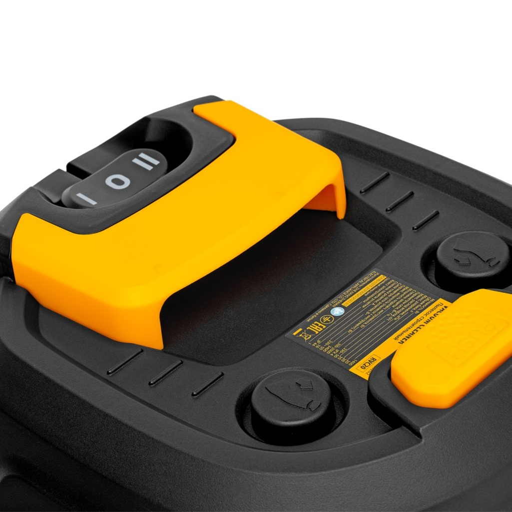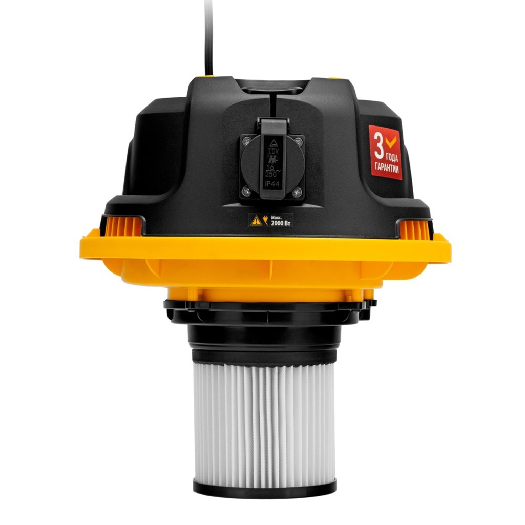 Пылесос способен собирать сухой мусор, такой как опилки, гипс и кирпичная крошка, а также жидкости, включая разлитую воду и остатки лакокрасочных материалов. Он идеально подходит для ремонта, строительства и автомастерских. Благодаря объёму бака, его не нужно часто опустошать, что удобно при выполнении средних и больших объёмов работ. Прочный пластиковый корпус устойчив к механическим повреждениям. Фильтр тонкой очистки эффективно задерживает мелкую пыль, что особенно важно при шлифовке и сверлении. Также предусмотрена возможность использования мешка для сбора пыли, что дополнительно защищает двигатель.