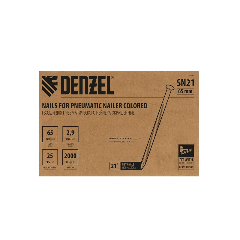 Описание гвоздей Denzel SN21 65мм 2000шт крашенных 57695