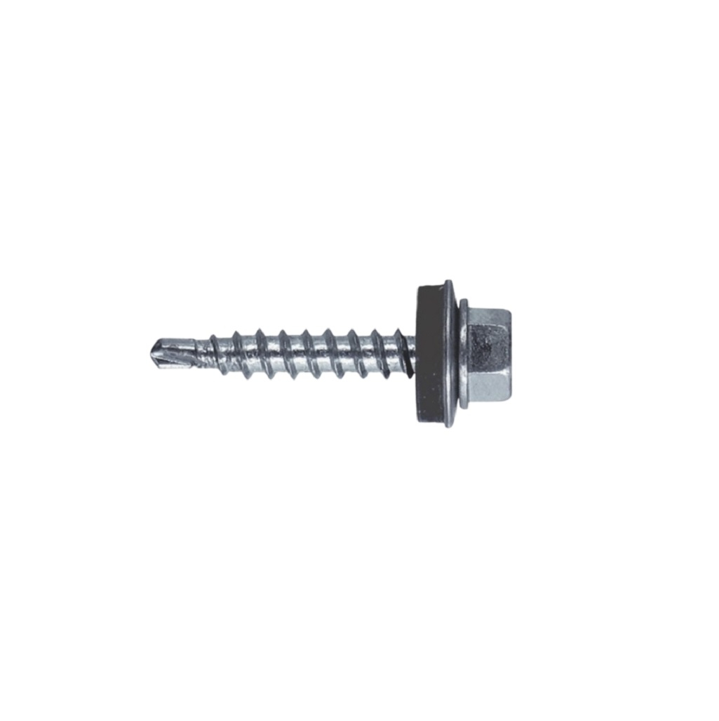 Саморез кровельный с шайбой EPDM Жесть УТ-00002787 оцинкованная сталь, 5.5х32 мм, упаковка 60 шт, контейнер 0.28 л предназначен для фиксации кровельных материалов, таких как металлические листы, профнастил, термопанели и сэндвич-панели, к деревянным или металлическим основаниям. Его конструкция включает шестигранную головку, наконечник в форме сверла и шайбу с EPDM-прокладкой, которая обеспечивает герметичность и защиту от влаги. Головка самореза имеет шестигранную форму с буртиком, а наконечник выполнен в виде сверла с частой резьбой. Эти саморезы подходят для монтажа различных элементов кровли, начиная от обрешетки и заканчивая фальцевой кровлей или композитными панелями. Они также используются при установке козырьков, водосточных желобов и навесов. Саморез кровельный с шайбой EPDM Жесть изготовлен из высококачественной оцинкованной стали, что обеспечивает его долговечность и устойчивость к коррозии.