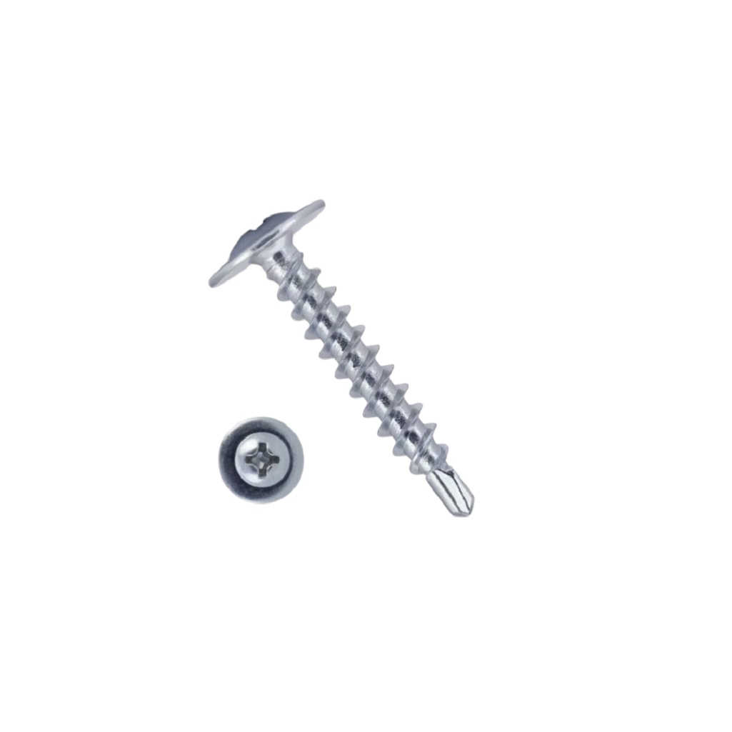 Саморез с прессшайбой Жесть УТ-00003094 острый 4.2х50 мм, оцинкованная сталь, упаковка 100 шт, контейнер 0.5 л предназначен для монтажа металлических конструкций, таких как каркасы зданий, перегородки, фасады, водостоки, вентиляционные системы и кровельные материалы. Он также используется для фиксации наружной и внутренней отделки, включая гипсокартон. Саморез выполнен из оцинкованной стали. Саморез с прессшайбой Жесть используется для соединения металлических листов, кровельных материалов, поликарбоната и пластиковых элементов между собой или с другими поверхностями. Инструмент подходит для крепления металлических профилей, труб и прочих деталей. Заострённый наконечник самореза позволяет легко пробивать металл толщиной до 1 мм без предварительного сверления. Головка самореза имеет полукруглую форму с прессшайбой и крестообразным шлицем Phillips с частой резьбой. Наконечник самореза острый, что обеспечивает надёжное прижатие листов и предотвращает самопроизвольное раскручивание крепежа.