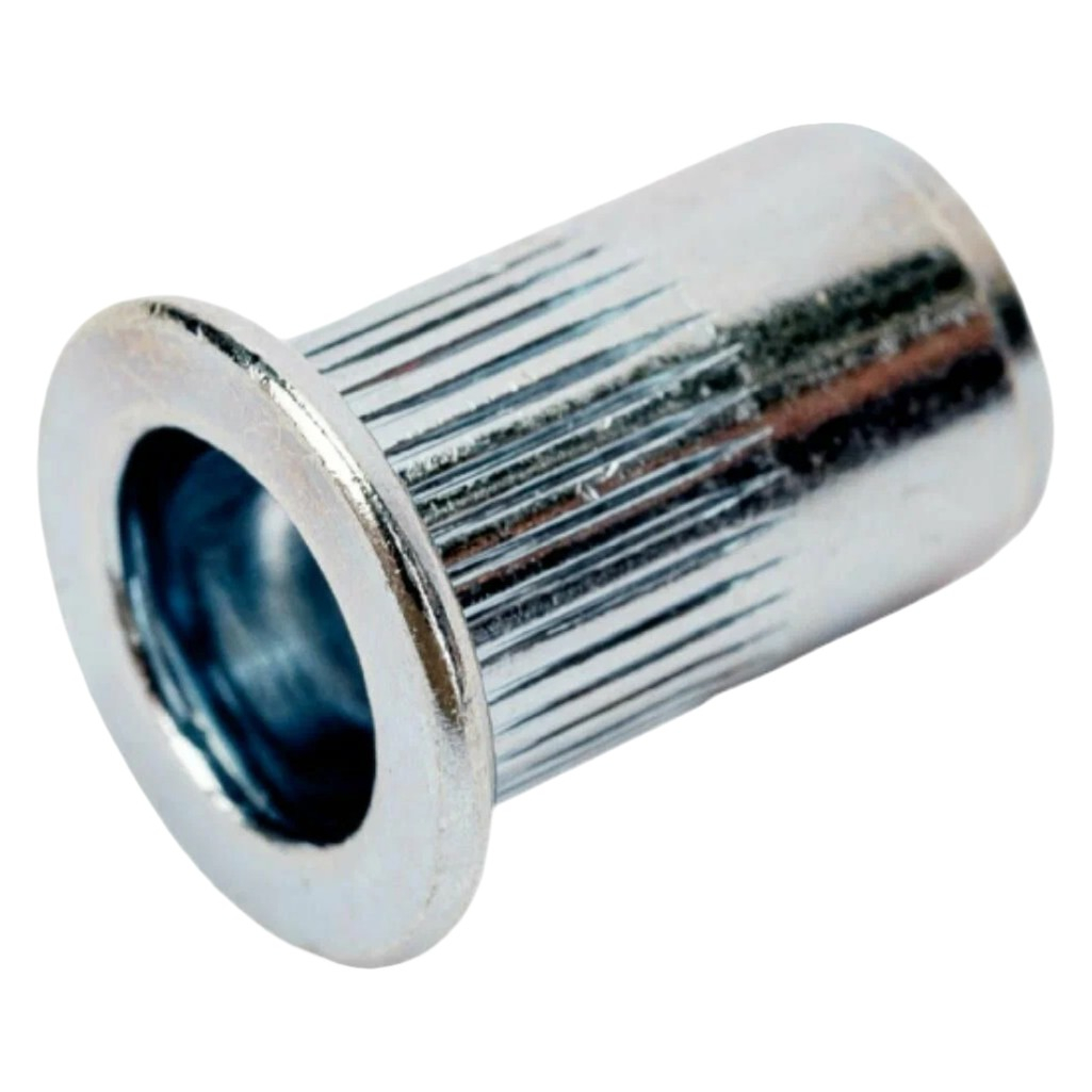 Заклепка резьбовая Зубр М3, с насечками, стальная, стандартный бортик, 31317-03 — это крепёжный элемент для создания прочного неразъёмного соединения в тонколистовых материалах. После установки внутри остаётся резьба М3 для монтажа других деталей.