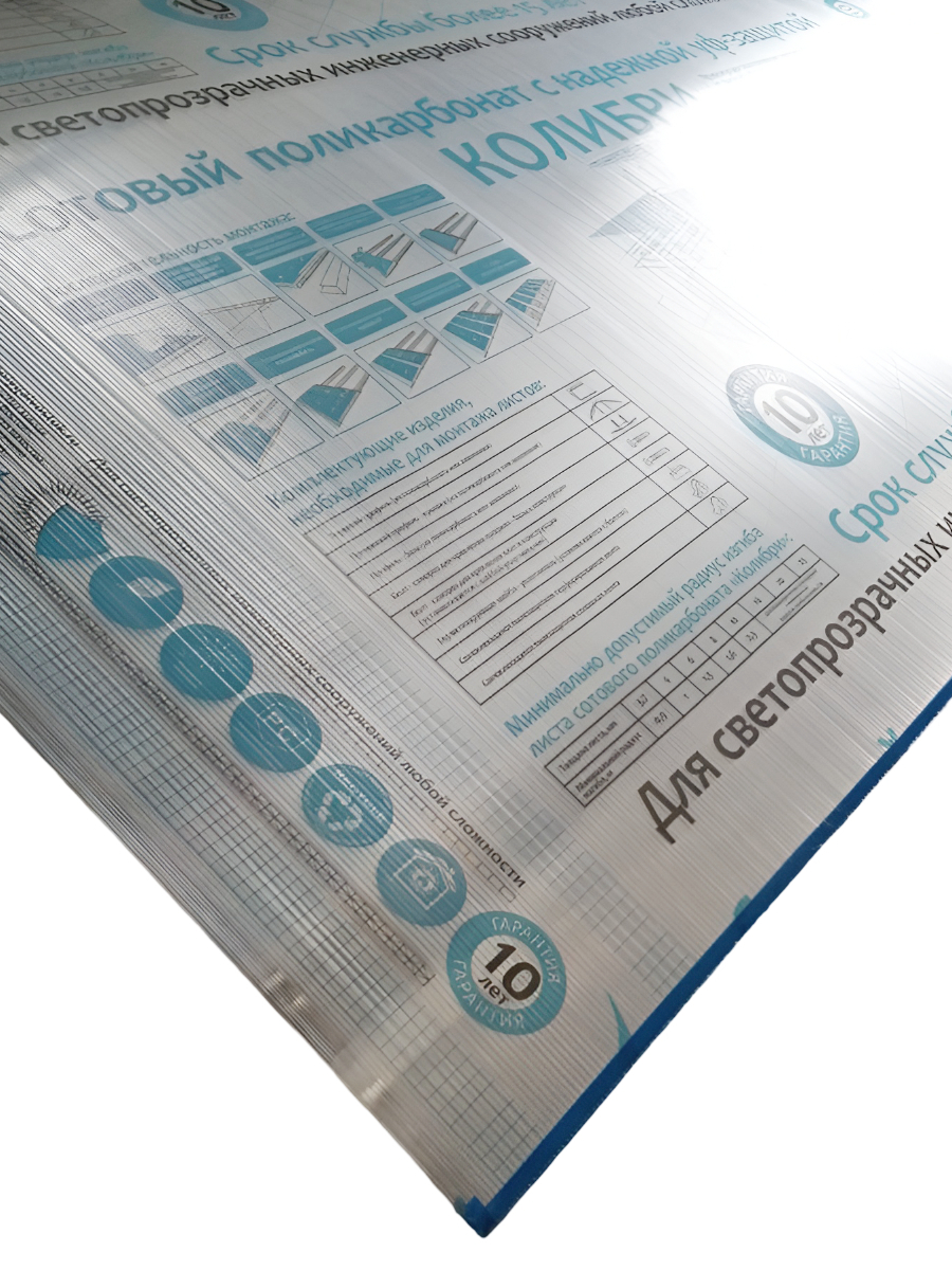 Технические характеристики поликарбоната сотового Колибри Т-4, 3000х2100х4 мм, прозрачного, с УФ-защитой